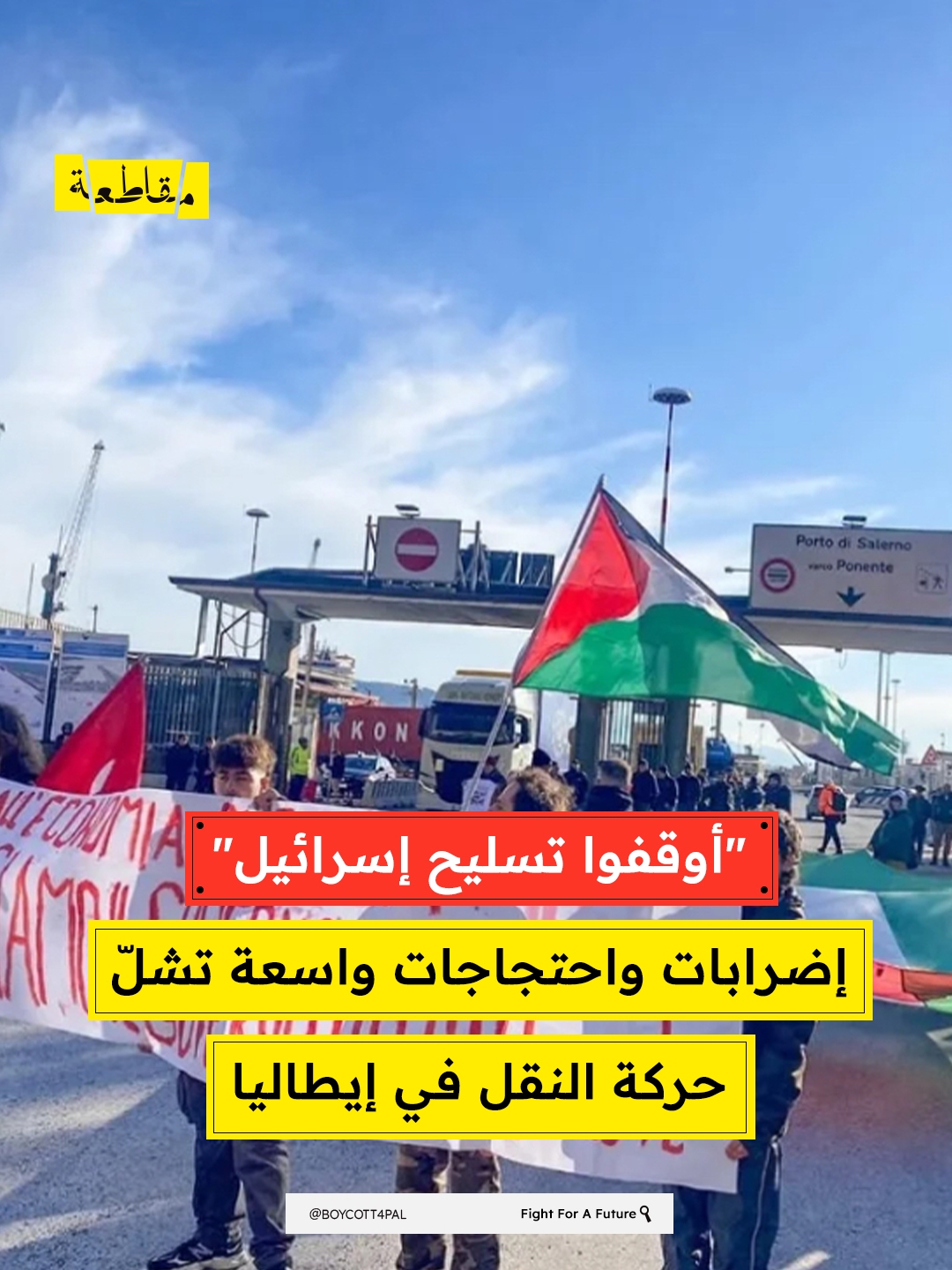 شهدت عدة مدن إيطالية موجة واسعة من الإضرابات والاحتجاجات ضد حكومة جورجيا ميلوني، اعتراضًا على زيادة الإنفاق العسكري والدعم المستمر للاحتلال. ودعت نقابة USB العمالية المتشددة، إلى جانب منظمات نقابية صغيرة، إلى إضراب شامل ليوم واحد، ما أدى إلى شلل كبير في قطاعَي النقل الجوي والحديدي.
