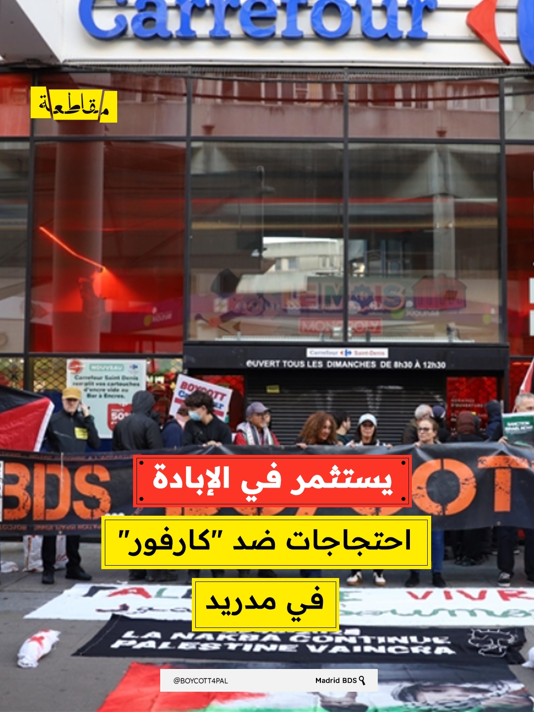 واختتم الناشطون احتجاجهم بالدعوة إلى مقاطعة الشركة، مشيرين إلى أن الاستمرار بالتسوق في "كارفور" يساهم بشكل مباشر في دعم آلة الإبادة الصهيونية..