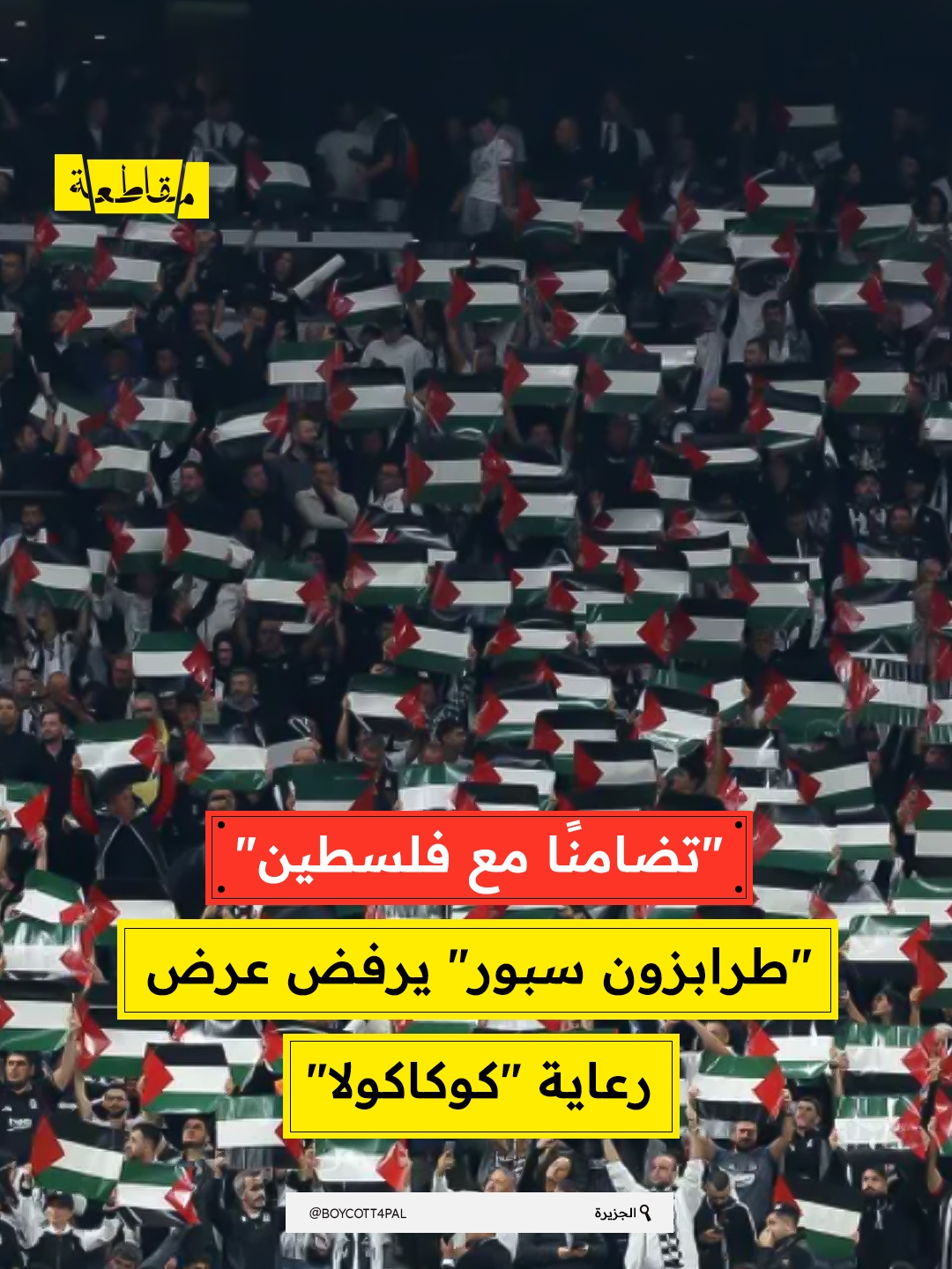 أعلن رئيس نادي "طرابزون سبور" التركي، أرطغرل دوغان، أن النادي رفض عرضًا تقدمت به شركة "كوكاكولا " لرعاية الفريق، مؤكدًا أن القرار جاء انسجامًا مع موقف النادي الداعم للقضية الفلسطينية.