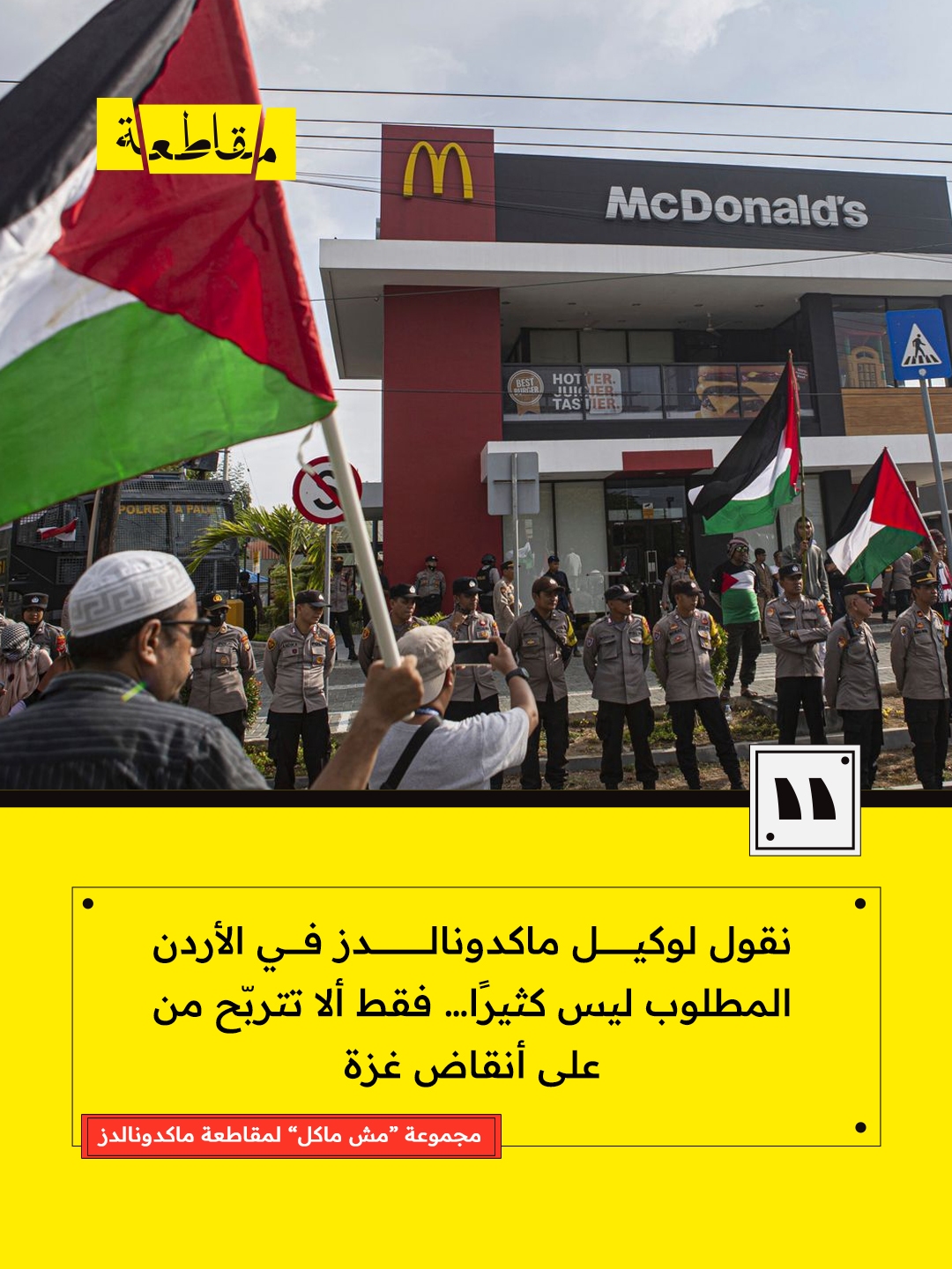 أصدرت مجموعة "مش ماكل" تصريحات موجّهة إلى وكيل سلسلة ماكدونالدز في الأردن، مؤكدة أن القضية ليست خلافًا تجاريًا بل موقفًا أخلاقيًا في لحظة تاريخية.