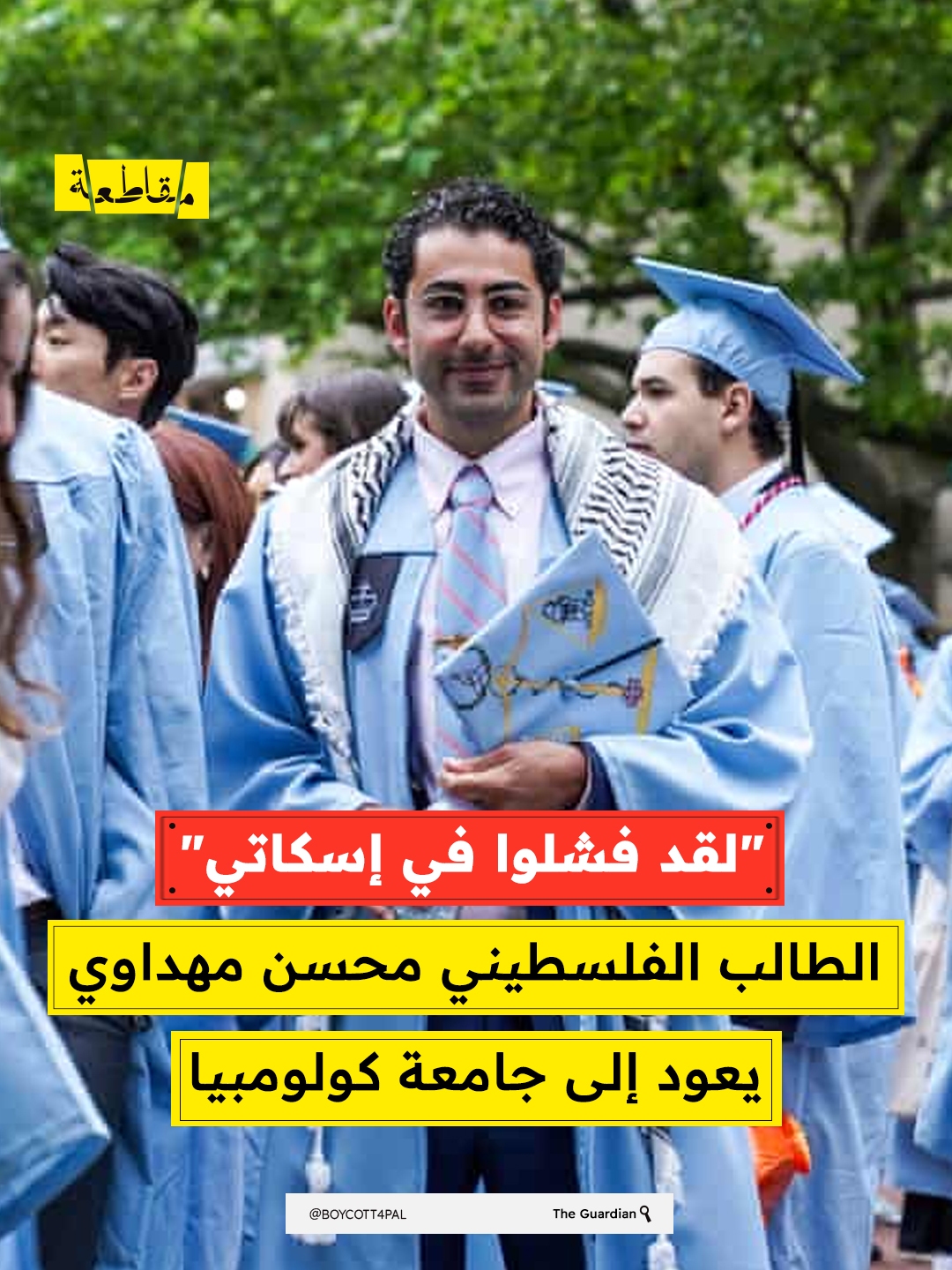 وأضاف: “أشعر بالحماس لهذه المرحلة، وأعتبر عودتي انتصارًا، لأن الحكومة لم تستطع أن تحرمني من حقي في التعليم”. ويُعدّ مهداوي من أبرز منظمي احتجاجات طلاب جامعة كولومبيا العام الماضي ضد حرب "إسرائيل" على غزة.