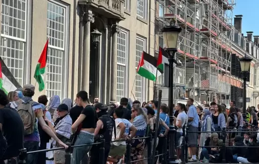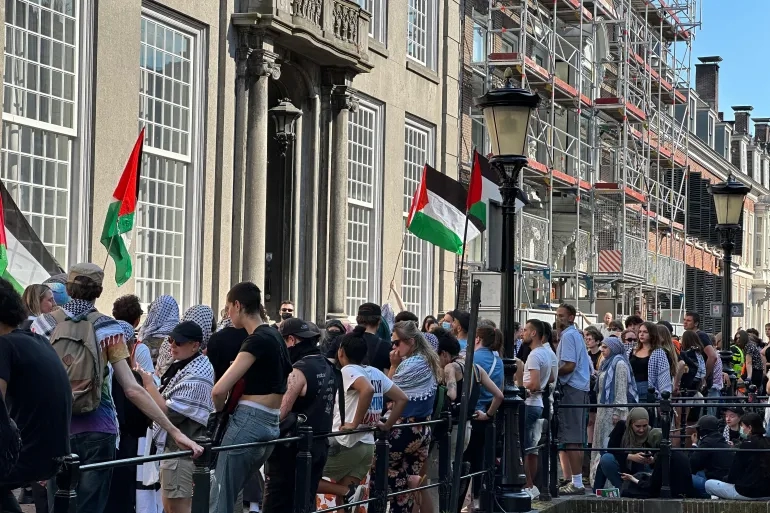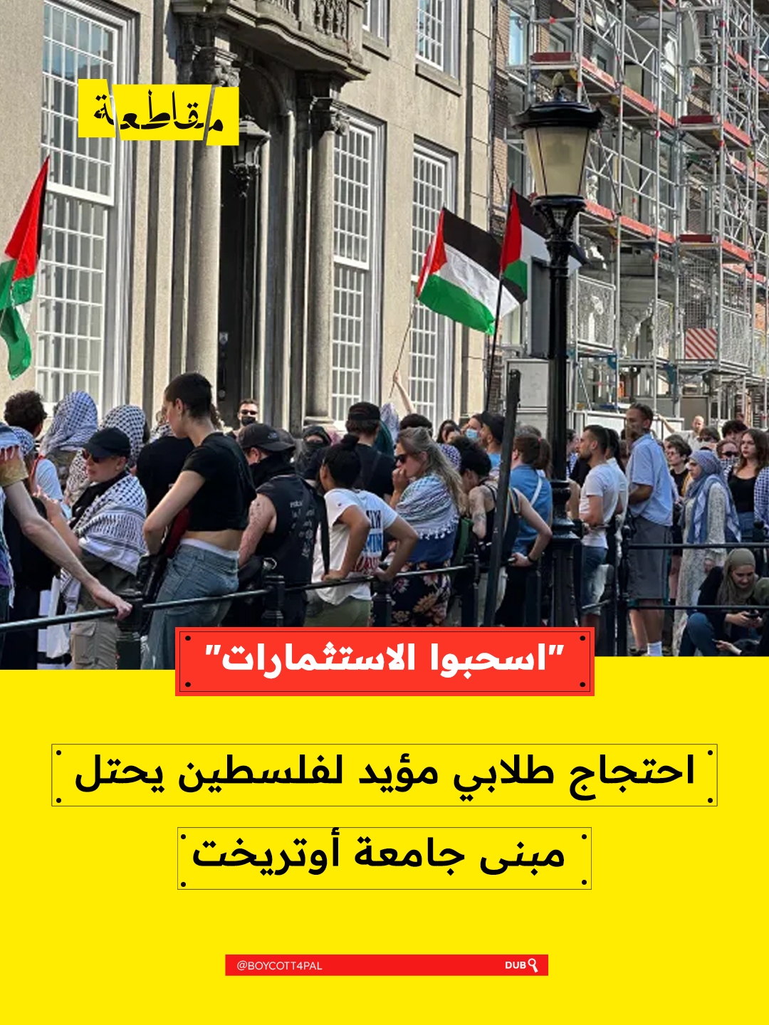 احتل نحو 20 متظاهرًا مبنى دريفت 25 في جامعة أوتريخت صباح أمس الثلاثاء، في خطوة تطالب المجلس التنفيذي بقطع العلاقات مع المؤسسات الإسرائيلية والمبادرة بالانسحاب من مشاريع الأبحاث الأوروبية المشتركة مع إسرائيل. وأعلنت مجموعة UU Encampment عن نيتها الاحتجاج في مبانٍ أخرى بحديقة أوتريخت للعلوم، فيما تراقب الجامعة الوضع عن كثب وتؤكد على أهمية سلامة المتظاهرين والزوار. والشرطة تتابع الأحداث دون تدخل حتى الآن، وتم نقل أغلب الدروس إلى مبانٍ أخرى.