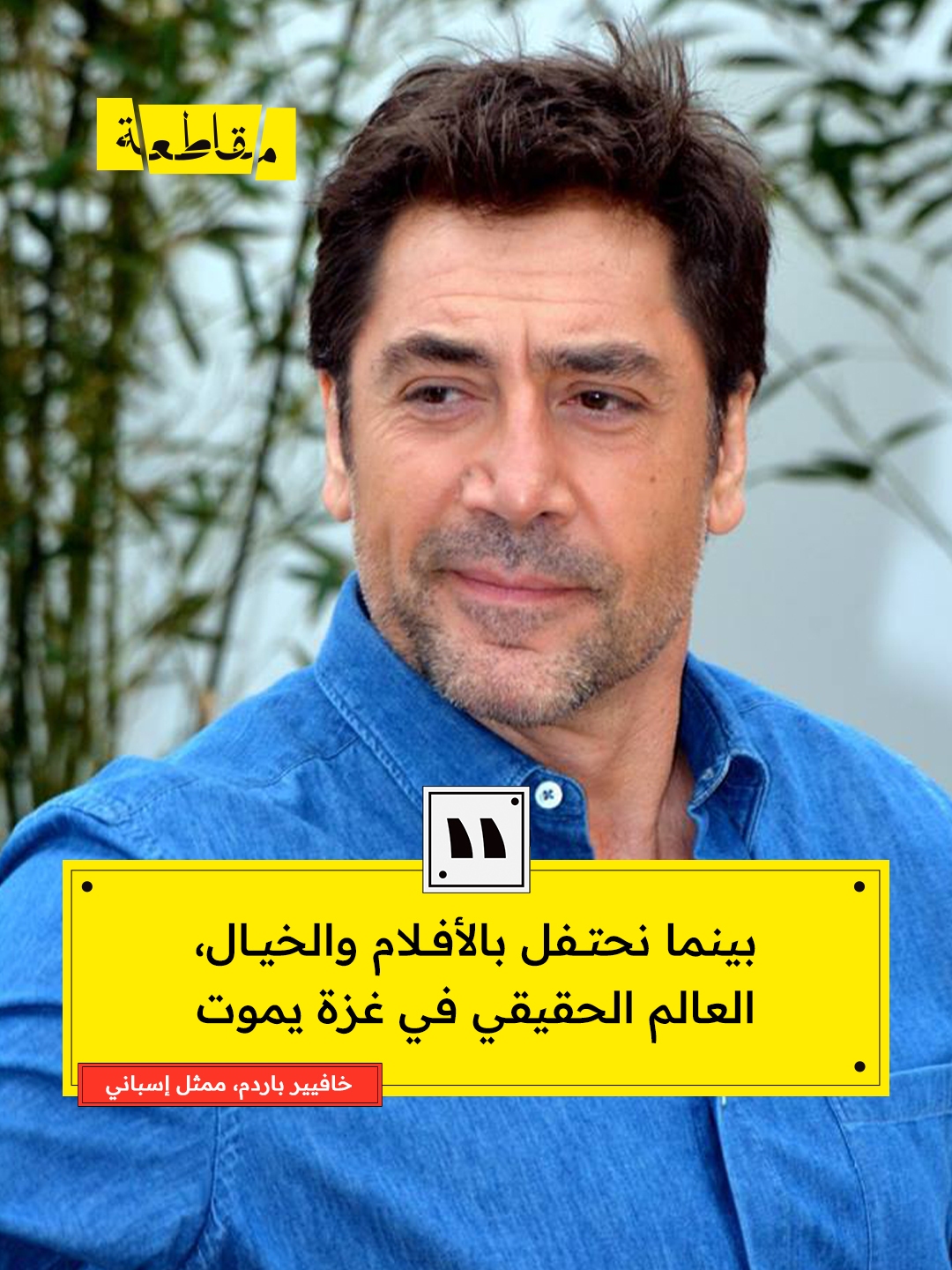 قال الممثل الإسباني الحائز على الأوسكار خافيير باردم خلال مقابلة صحفية: “بينما نحتفل بالأفلام والخيال، العالم الحقيقي في غزة يموت، لا يمكننا أن ننسى ما يحدث في العالم الحقيقي. في غزة يموت آلاف الأطفال جوعًا، وتُرتكب إبادة جماعية أمام أعيننا بتقنية 4K.”