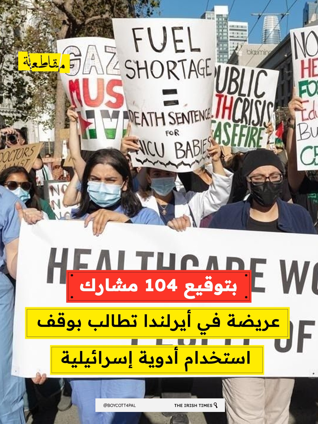 الرسالة وُقعت من أطباء وممرضين ومتخصصين في الرعاية الصحية والموظفين الإداريين وعمال الخدمات، في خطوة وصفها مراقبون بأنها قد تفتح الباب أمام موجة أوسع من المقاطعة داخل المؤسسات الصحية الأيرلندية