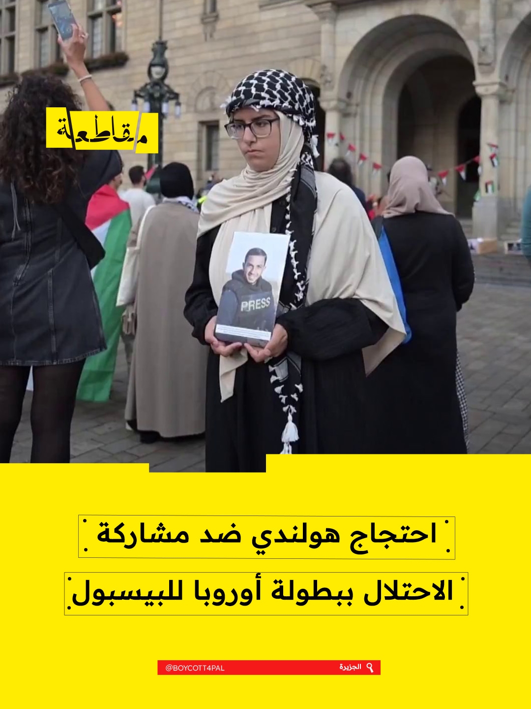 تجمعت مجموعة من المتظاهرين المتضامنين مع فلسطين أمام مبنى بلدية روتردام الهولندية احتجاجًا على مشاركة فريق "إسرائيلي" في بطولة أوروبا للبيسبول، مشيرين إلى أن الرياضة باتت تستخدم لتبييض جرائم الإبادة الجماعية المرتكبة بحق الشعب الفلسطيني.