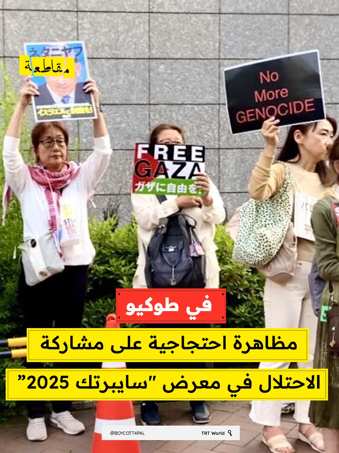 تجمّع مؤيدون لفلسطين، أمس الجمعة في طوكيو، للتنديد بمشاركة "إسرائيل" في معرض “سايبرتك” الدولي 2025. وأعربت مجموعة تُعرّف نفسها بأنها فلسطينية في اليابان عن رفضها لتعاون المعرض مع الاحتلال، فيما رفع المتظاهرون الأعلام الفلسطينية أمام الفندق الذي استضاف الحدث، مردّدين هتافات مؤيدة لفلسطين، وصل صداها أحيانًا إلى داخل قاعة المؤتمر.