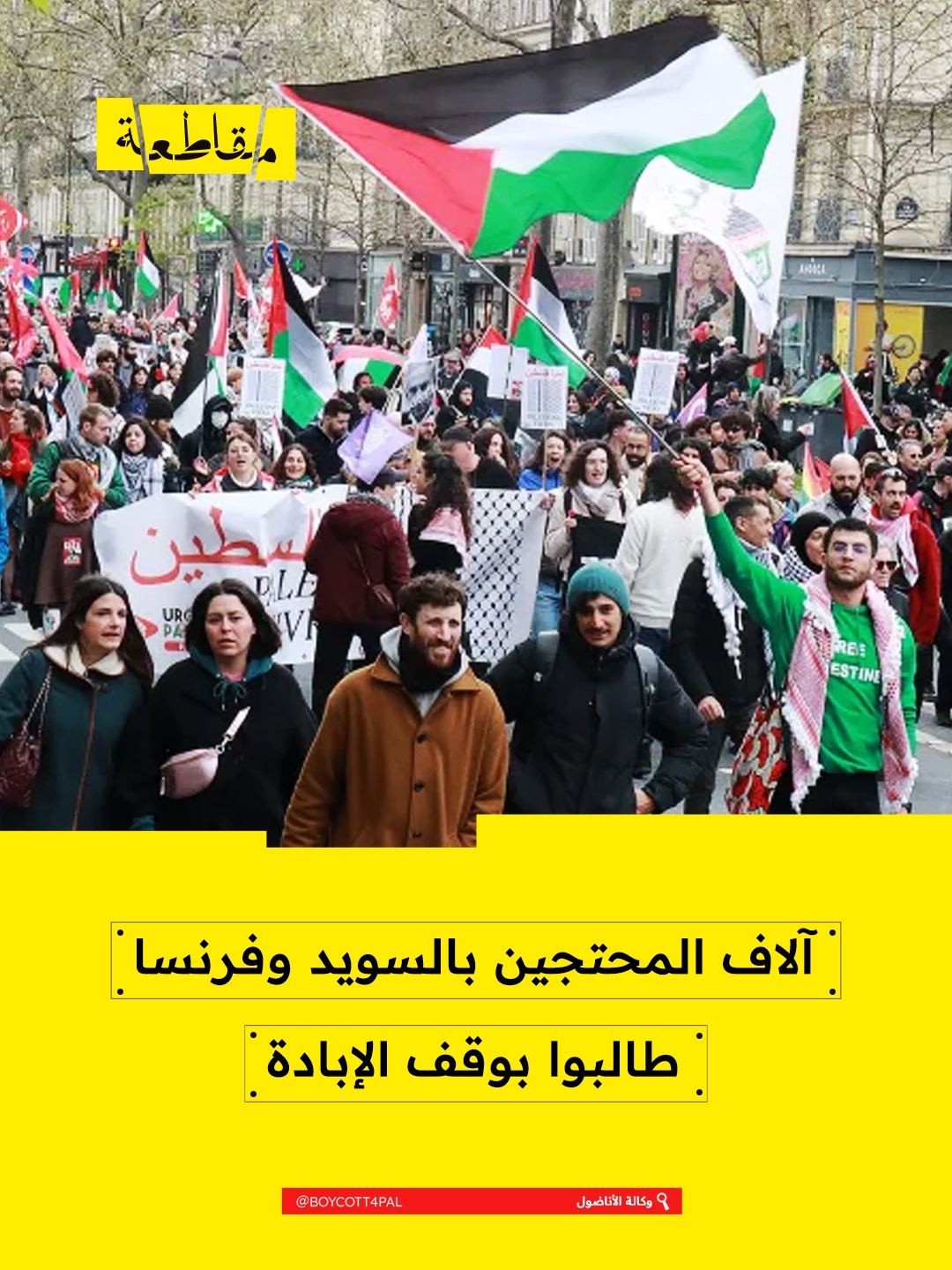 وفي باريس، اجتمع آلاف المحتجين في ميدان الجمهورية حاملين بأيديهم أعلام فلسطين، مطالبين بوقف الإبادة الإسرائيلية في غزة. وطالب المتظاهرون الحكومة الفرنسية بفرض عقوبات على حكومة "تل أبيب"، ودعوا إلى مقاطعة العلامات التجارية العالمية الداعمة للاحتلال.