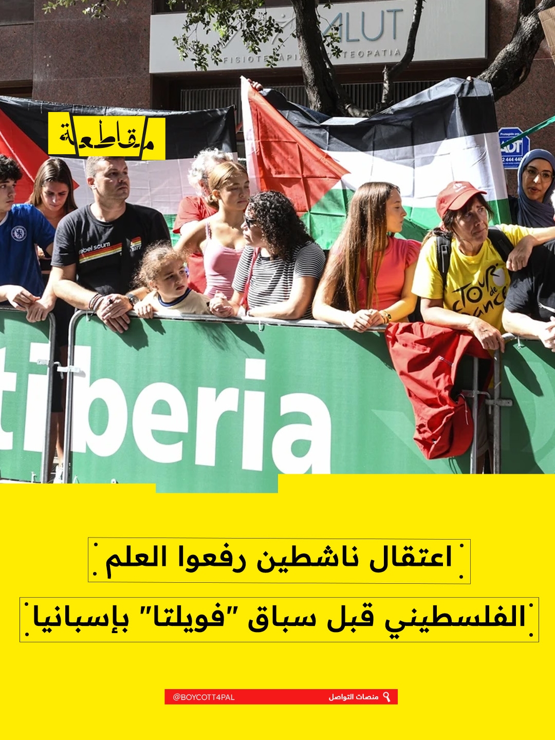 اعتقلت الشرطة الإسبانية ناشطين اثنين في مدينة مونفورتي دي ليموس أمس الأحد، بعد أن رفعا العلم الفلسطيني قبيل مرور متسابقي “طواف إسبانيا” للدراجات (فويلتا). وأفادت تقارير محلية أن الاعتقال جاء بزعم “الإخلال بالنظام العام”، فيما ندد ناشطون بالخطوة واعتبروها تقييدًا لحرية التعبير وتضامنًا مشروعًا مع فلسطين. يأتي ذلك في ظل اتساع رقعة الاحتجاجات والمبادرات التضامنية مع غزة في أنحاء أوروبا.