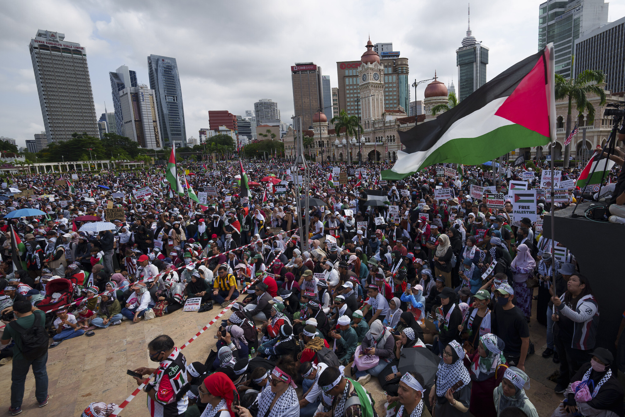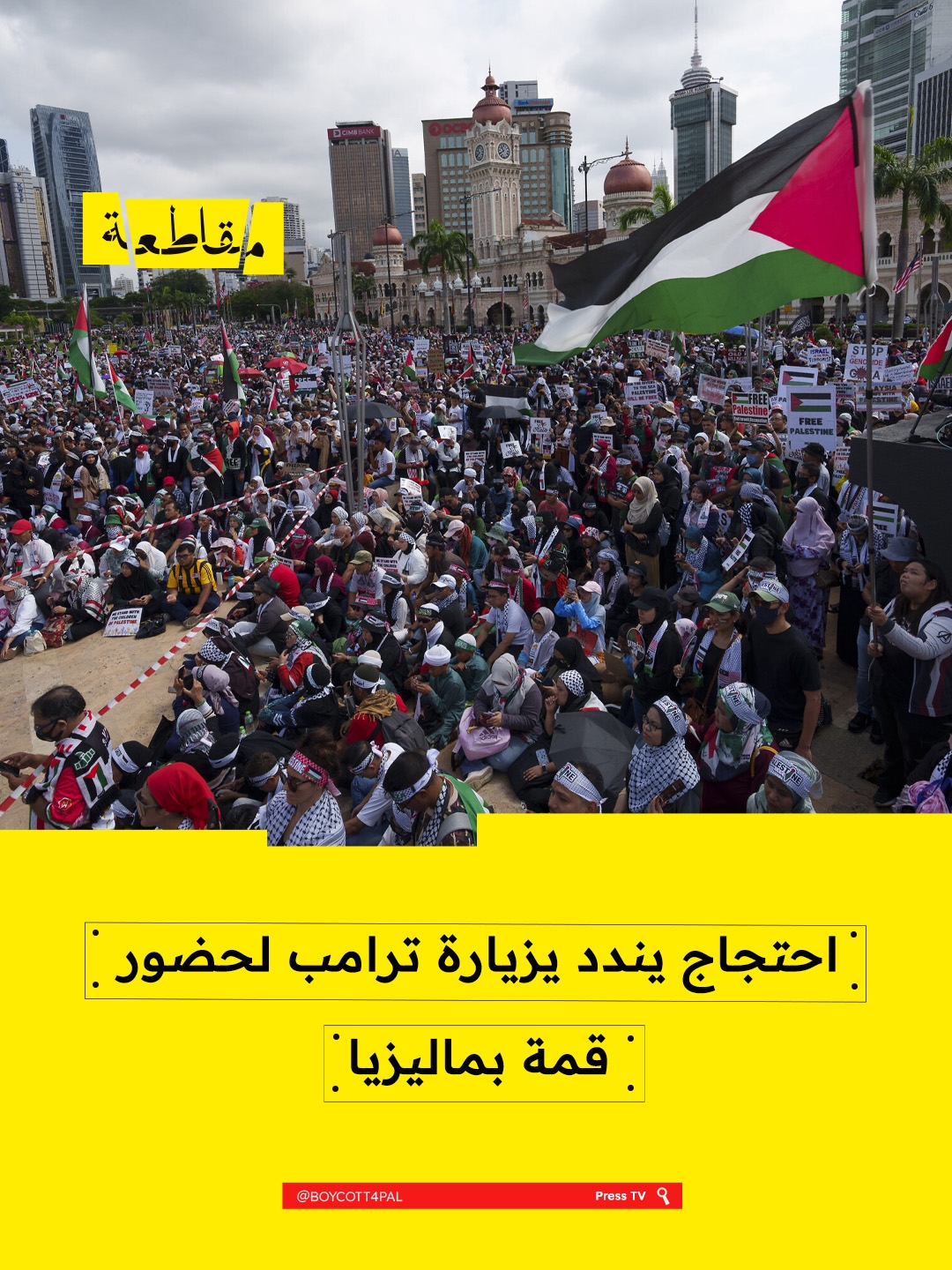 شهدت العاصمة الماليزية كوالالمبور، تظاهرة بمئات المشاركين المؤيدين لفلسطين احتجاجًا على زيارة الرئيس الأمريكي دونالد ترامب لحضور قمة رابطة دول جنوب شرق آسيا (آسيان).