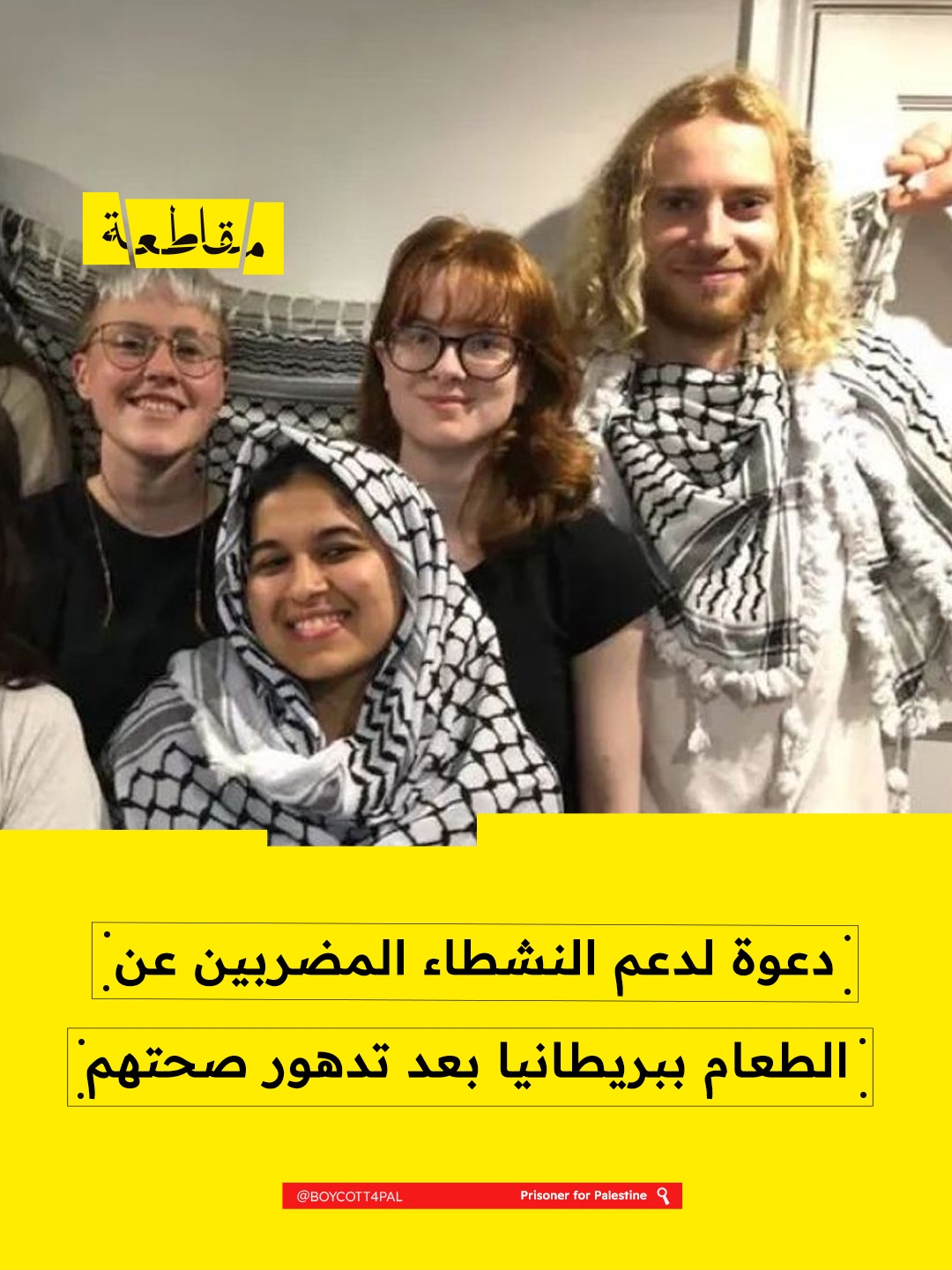 وتدعو مجموعة “سجناء من أجل فلسطين” إلى التصرف العاجل لدعم المضربين عن الطعام، عبر نشر الوعي، والمشاركة في الاحتجاجات، وتوقيع العرائض، والتواصل مع المسؤولين، ونشر صورهم الشخصية لتسليط الضوء على معاناتهم.