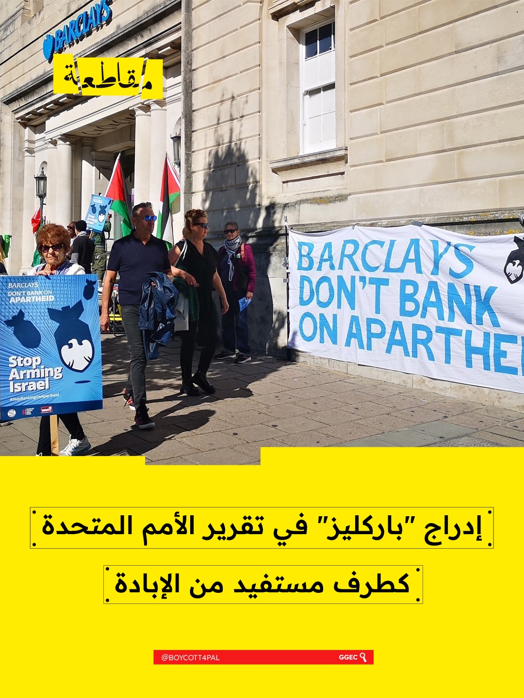 دعت مجموعة “تامسايد لأجل فلسطين” الجمهور إلى مقاطعة بنك "باركليز"، معتبرة أن البنك يقف على الجانب الخطأ من التاريخ بسبب علاقاته المالية التي أسهمت في دعم سياسات قمع الفلسطينيين. وأكدت المجموعة أن