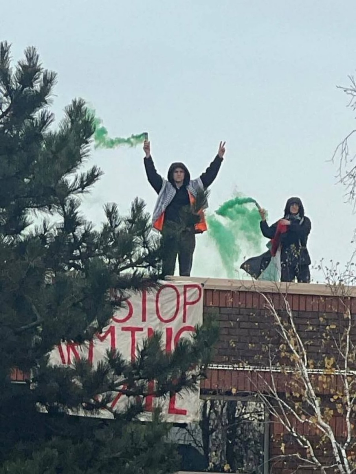 أفلت أربعة ناشطين مؤيدين للفلسطينيين من أحكام السجن الفوري بعد أن نظموا احتجاجًا على سطح مبنى شركة تصنيع أسلحة داعم للاحتلال في شيبلي، حيث ارتفعت هتافات "تحرير فلسطين" من الجمهور أثناء مغادرتهم قفص ال