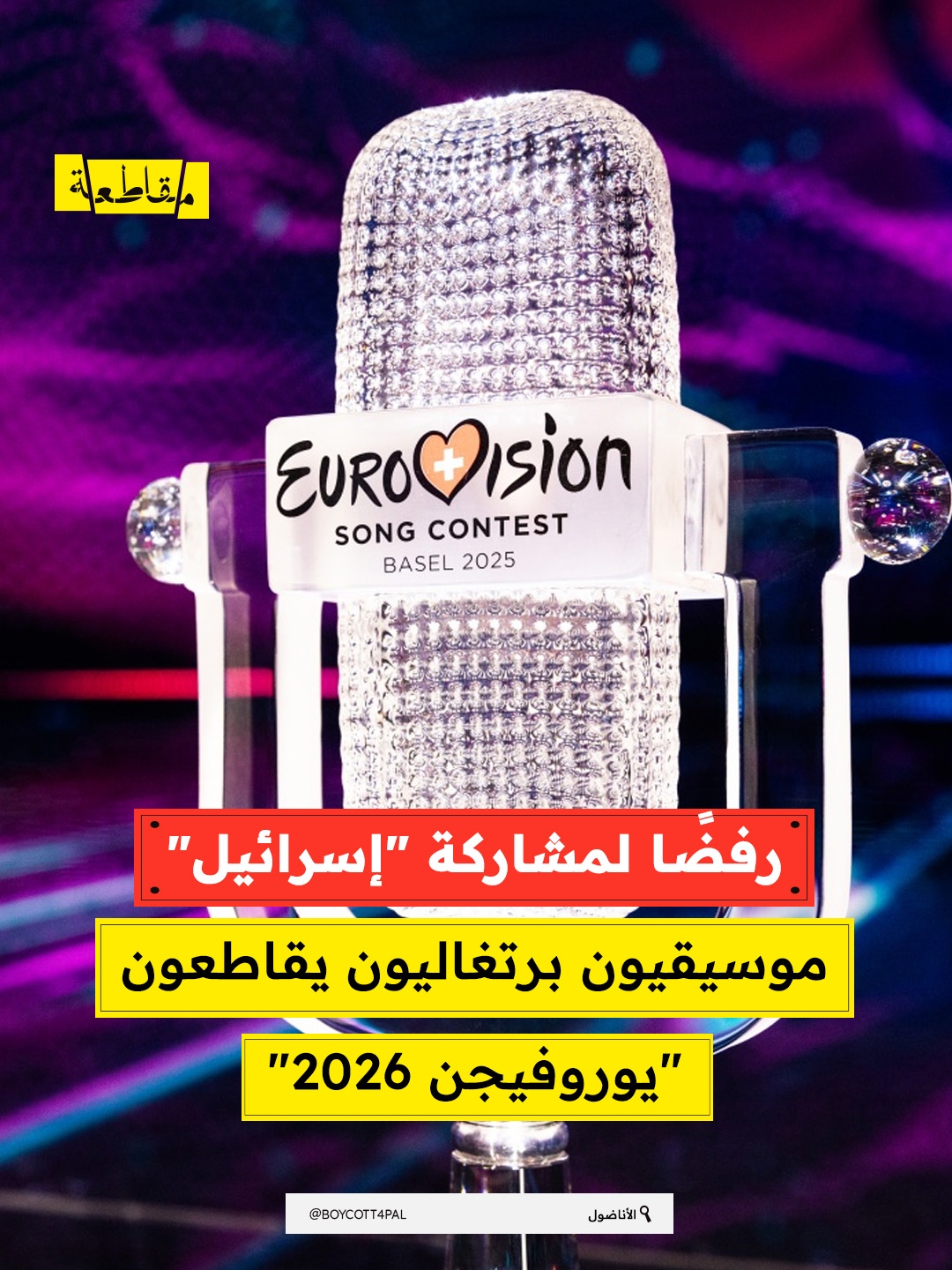 أعلن 17 موسيقيًا برتغاليًا مشاركين في برنامج الاختيار الوطني "مهرجان الأغنية" رفضهم تمثيل البرتغال في مسابقة الأغنية الأوروبية "يوروفيجن 2026"، حتى في حال اختيارهم رسميًا، احتجاجًا على استمرار مشاركة "إسرائيل" في المسابقة.