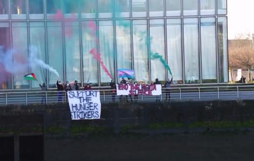 نفّذ ناشطون مؤيدون لفلسطين تحرّكًا احتجاجيًا أمام مقر هيئة الإذاعة البريطانية (BBC) في مدينة غلاسكو الاسكتلندية، حيث رفعوا لافتات تطالب المؤسسة بإنهاء ما وصفوه بالصمت الإعلامي تجاه قضية ثمانية سجناء سياسيين يخوضون إضرابًا عن الطعام داخل السجون البريطانية.