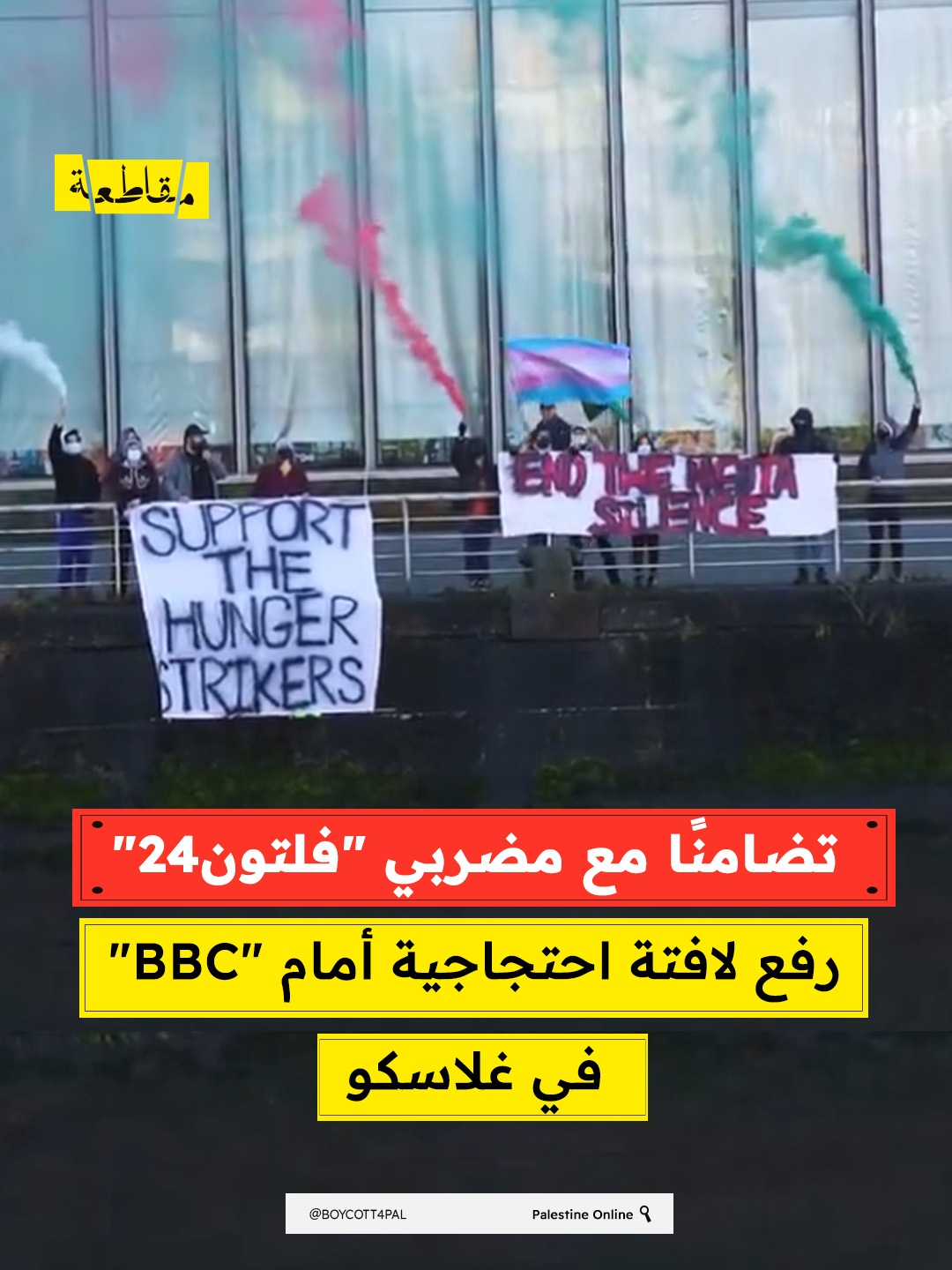 "تضامنًا مع مضربي "فلتون24" ..رفع لافتة احتجاجية أمام "BBC" في غلاسكو