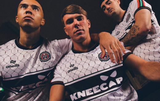 القميص الجديد يحمل ألوان العلمين الأيرلندي والفلسطيني، ويتضمن نقشة شبكية مستوحاة من الكوفية الفلسطينية، مع دمج رمزي للعلمين في مختلف تفاصيل التصميم. كما يظهر داخل شريط الرقبة لفظ "CEARTA" الذي يعني «الحقوق» باللغة الأيرلندية، وهو مقتبس من إحدى أغاني فرقة Kneecap.