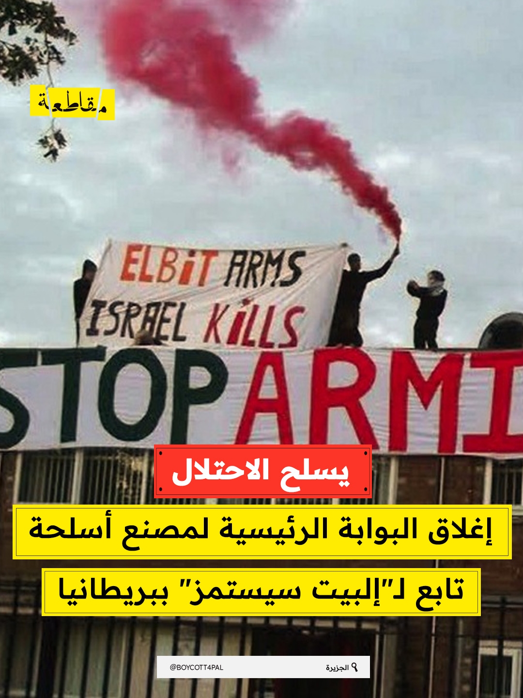 أغلق ناشطون، البوابة الرئيسية لمصنع أسلحة تابع لشركة "إلبيت سيستمز الإسرائيلية" في مقاطعة كينت جنوب شرقي بريطانيا، وذلك في إطار تحرك احتجاجي ضد تواطؤ الشركة في تزويد جيش الاحتلال بالأسلحة المستخدمة في العدوان على الشعب الفلسطيني الأعزل.