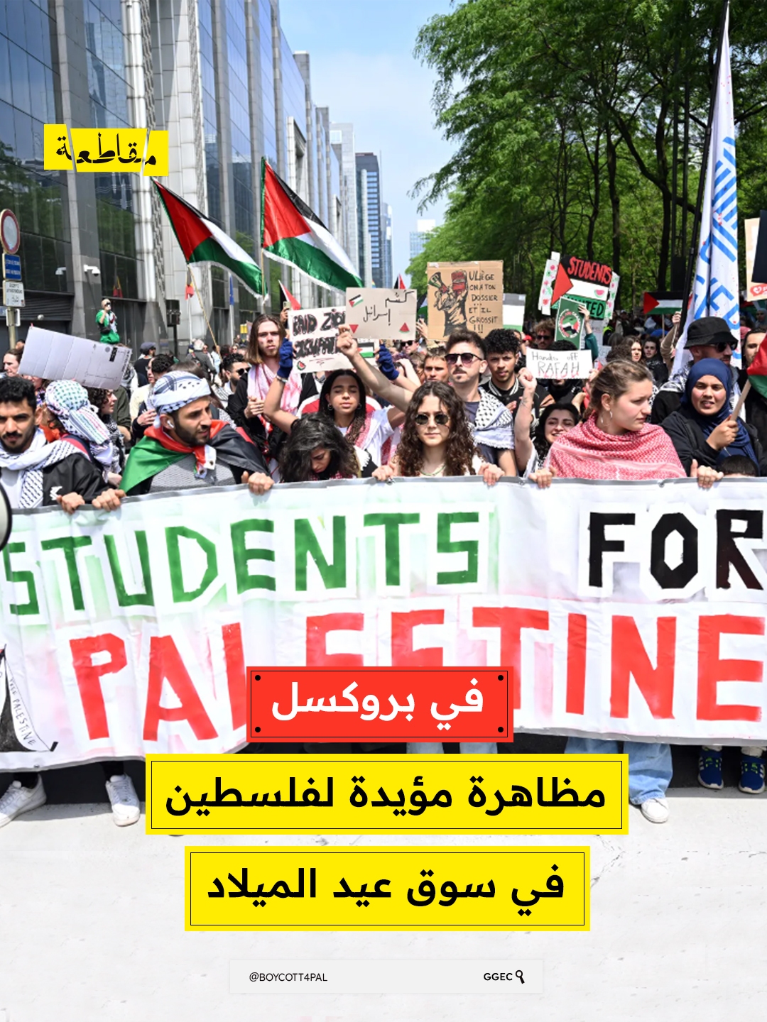 شهد سوق عيد الميلاد في بروكسل وقفة تضامنية مؤيدة لفلسطين، شارك فيها عشرات المتظاهرين رافعين الأعلام الفلسطينية ومرددين شعارات تطالب بالحرية والعدالة، في سياق الاحتجاجات الشعبية المستمرة ضد الجرائم المرتكبة بحق الشعب الفلسطيني.