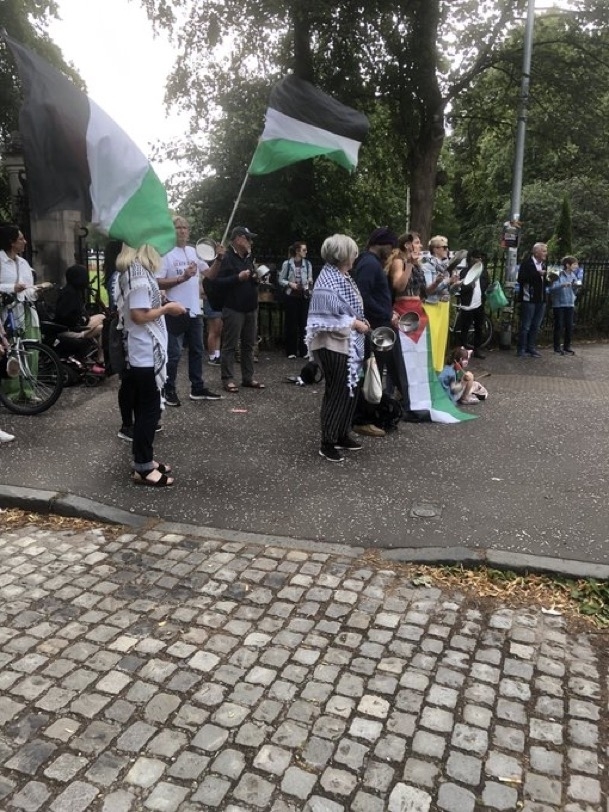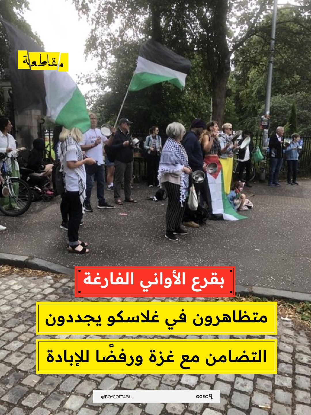 بقرع الأواني الفارغة .زمتظاهرون في غلاسكو يجددون التضامن مع غزة ورفضًا للإبادة