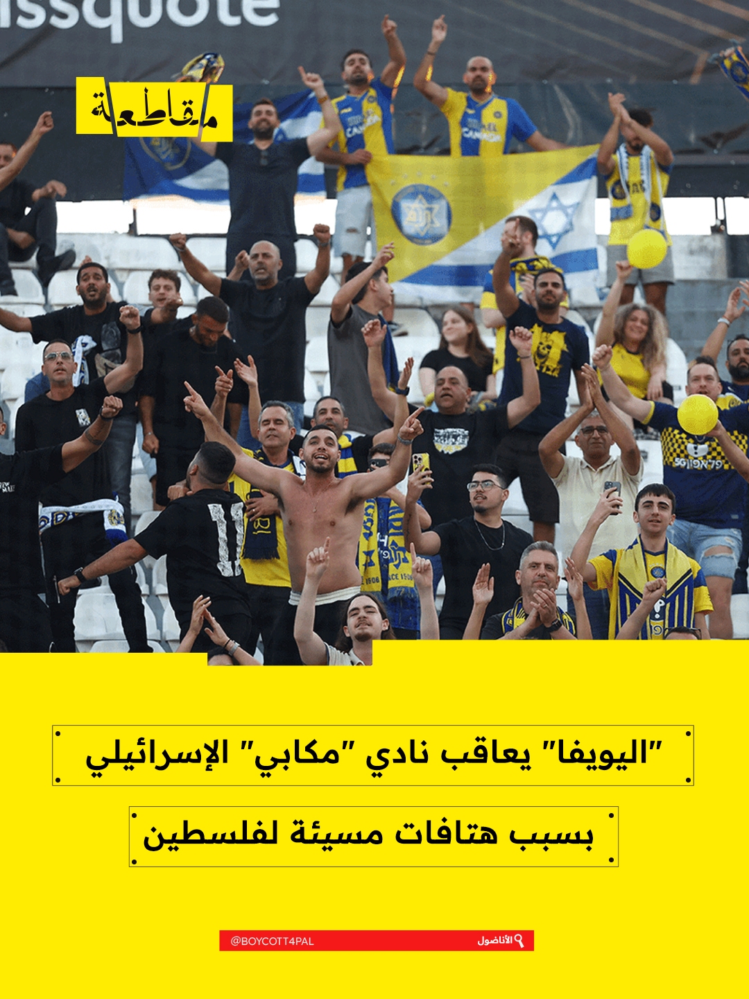 فرض الاتحاد الأوروبي لكرة القدم "يويفا"، غرامة مالية على نادي "مكابي تل أبيب الإسرائيلي"، بسبب هتافات أطلقها مشجعوه تضمنت إساءات لفلسطين خلال مباراة فريقهم مع شتوتغارت الألماني في الدوري الأوروبي.