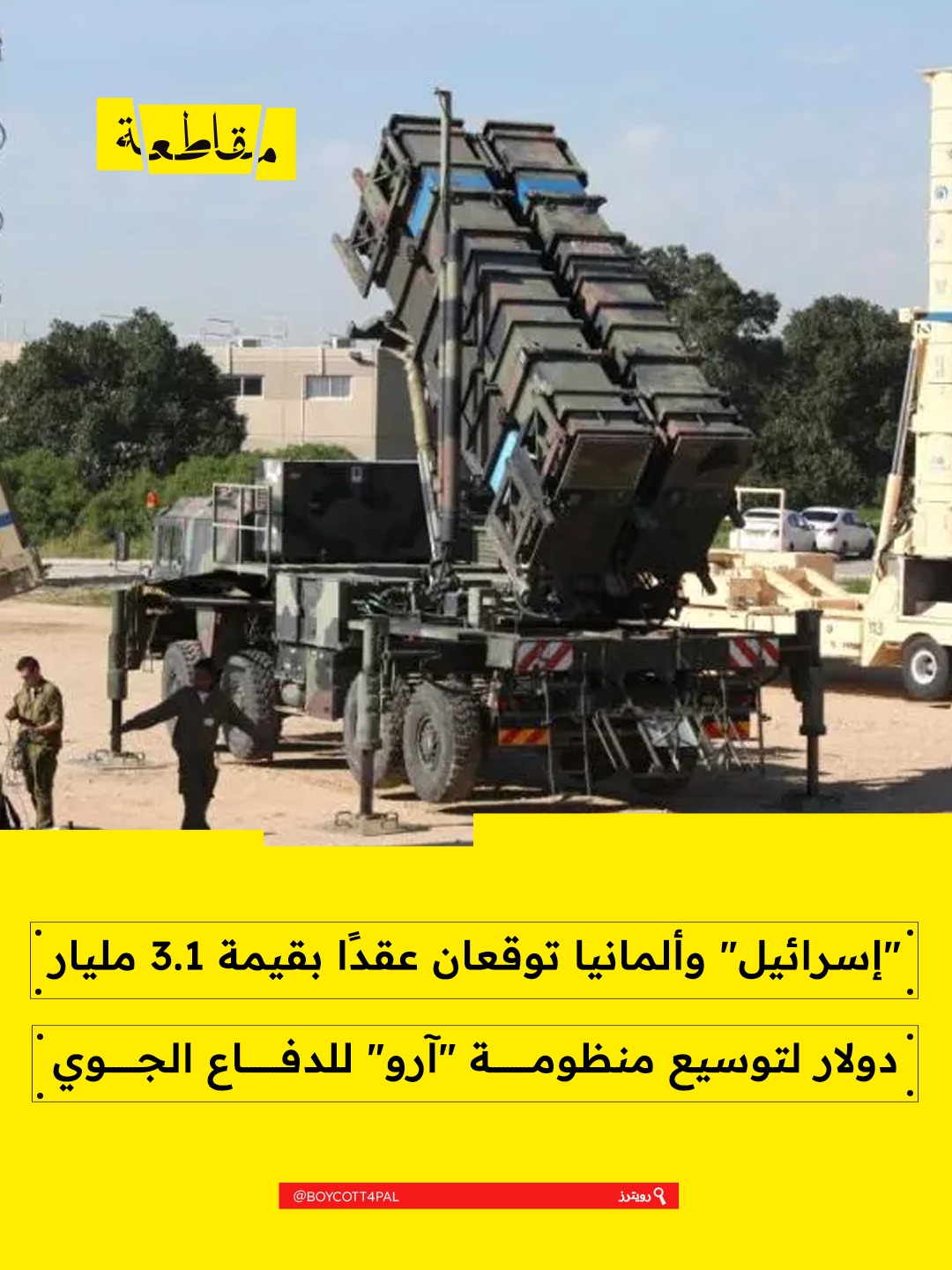 وكانت ألمانيا قد اشترت منظومة "آرو" للمرة الأولى عام 2023 وقالت ما تسمى "وزارة الحرب الإسرائيلية" إن "إجمالي قيمة الاتفاقيتين معا يبلغ "حوالي 6.7 مليار دولار ما يجعلها أكبر صفقة صادرات دفاعية في تاريخ إسرائيل".