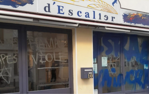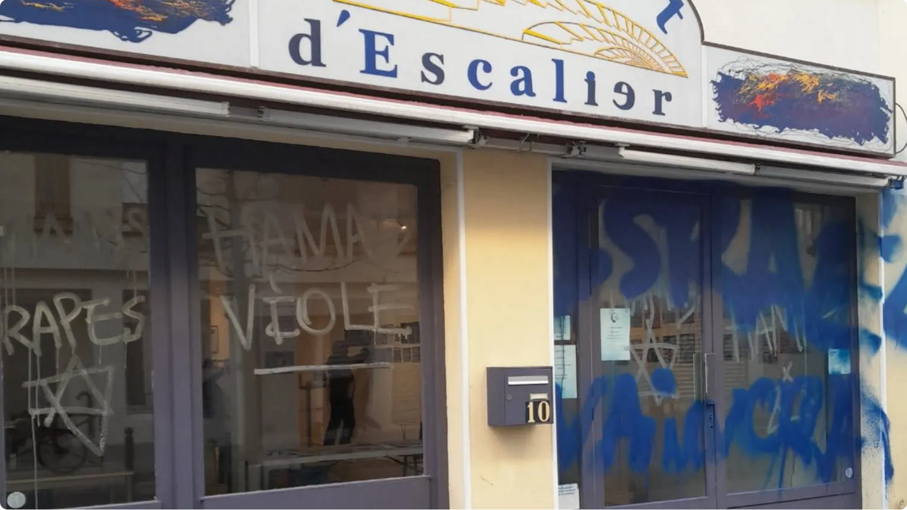 وتم العثور على كتابات جدارية على واجهة معرض "روح إسكالييه" تضمنت شعار "إسرائيل ستنتصر" مصحوبًا بنجمة داود، إلى جانب كتابات مسيئة أخرى.