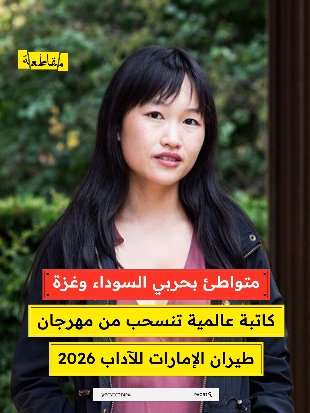أثنت الحملة الفلسطينية للمقاطعة الأكاديمية والثقافية لإسرائيل (PACBI) على قرار الكاتبة الحائزة على جوائز آر. إف. كوانغ الانسحاب من المشاركة، ودعت الكتّاب والفنانين والمثقفين والمؤسسات الأكاديمية في المنطقة العربية وحول العالم إلى أن يحذوا حذوها بالانسحاب من مهرجان طيران الإمارات للآداب 2026، المقرر انطلاقه في 21 كانون الثاني/يناير 2026.