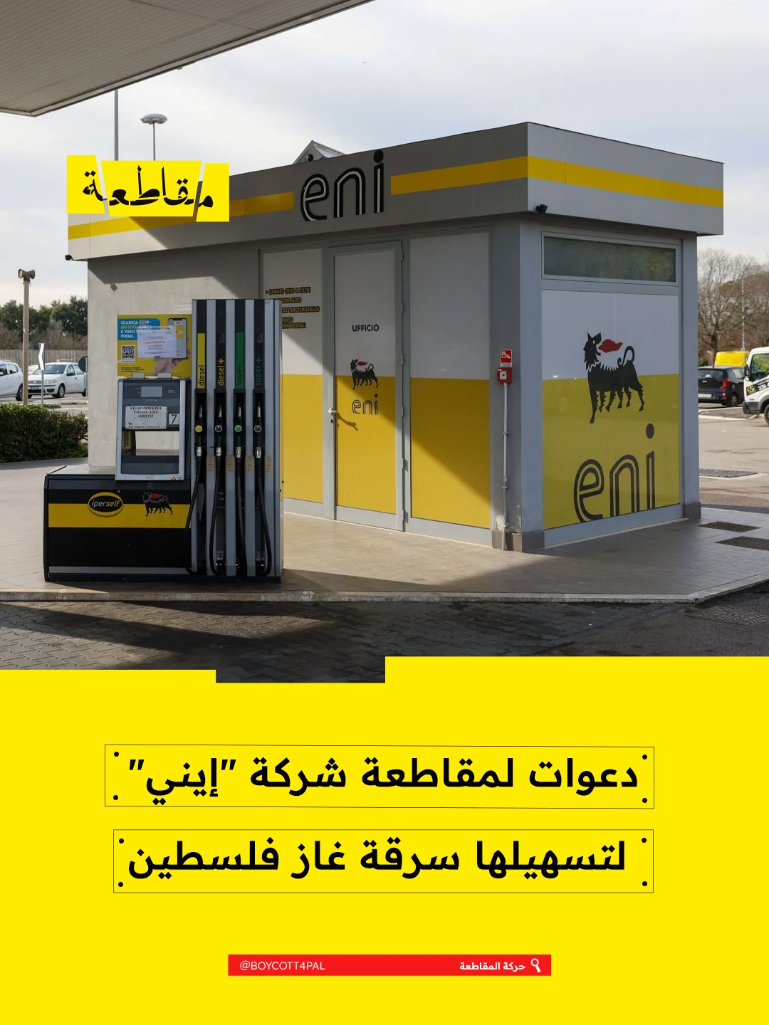 دعت حركة المقاطعة إلى اتخاذ إجراءات ضد شركة "إيني" الإيطالية، وذلك بسبب تعاونها مع الاحتلال الإسرائيلي في استخراج الغاز الفلسطيني بشكل غير قانوني. وأكدت الحركة على ضرورة الضغط لإنهاء شراكتها مع الاحتلال الذي يستغل الغاز الفلسطيني لصالحه.