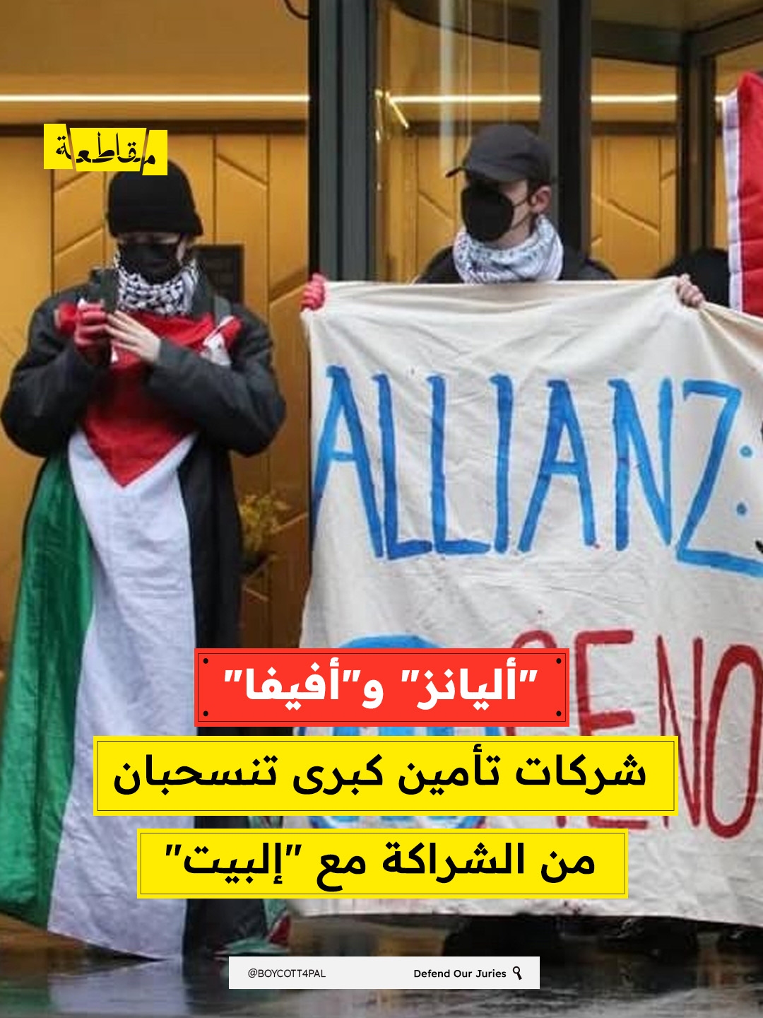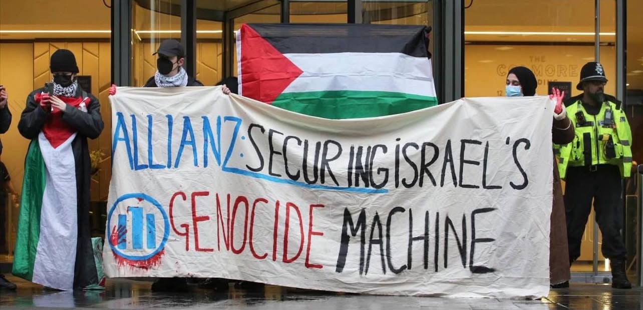بعد حملة عمل مباشر مستمرة قادتها "حركة فلسطين" قبل حظرها، أسقطت شركتا التأمين العملاقتان أليانز وأفيفا تغطيتهما عن شركة "إلبيت سيستمز"، أكبر مُصنّع للأسلحة في "إسرائيل". بدأت الحملة ضد شركة "أليانز" في أكتوبر 2024، حين استهدف نشطاء الحركة عشرة من مكاتبها في يوم واحد، مطالِبةً بوقف تأمين شركة "إلبيت". أعقب ذلك عشرات الدعاوى القضائية ضد عملاق التأمين في بريطانيا وأوروبا.