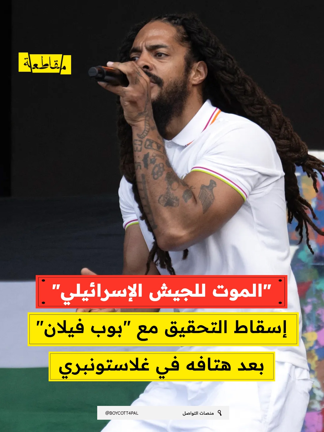 أعلنت الشرطة البريطانية أن التحقيق في هتاف بوب فيلان الشهير بـ”الموت للجيش الإسرائيلي” خلال مهرجان غلاستونبري قد تم إيقافه رسميًا، ولن تتم ملاحقته قضائيًا.