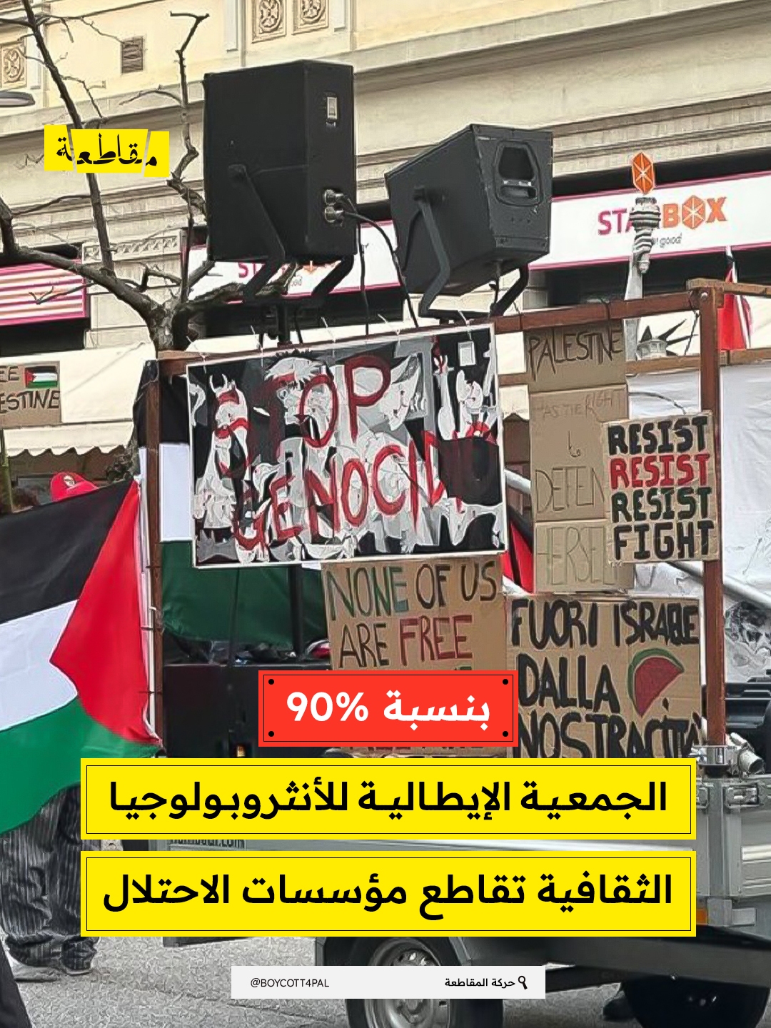 صوّتت الجمعية الإيطالية للأنثروبولوجيا الثقافية (SIAC) بإجماع شبه تام على قطع أي علاقات مع المؤسسات الأكاديمية الإسرائيلية المتواطئة في سياسات الاحتلال والفصل العنصري وانتهاكات حقوق الفلسطينيين.