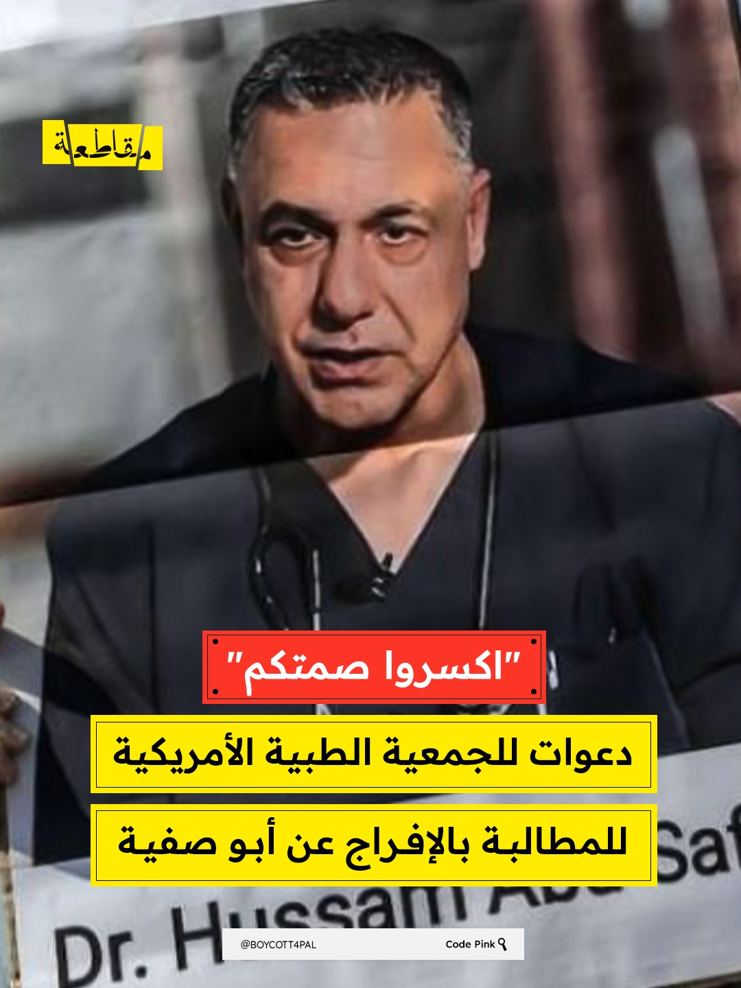 في ظل استمرار احتجاز العاملين الصحيين الفلسطينيين، تتزايد الدعوات الدولية لمحاسبة الجهات المسؤولة عن استهداف الطواقم الطبية. وفي هذا السياق، كثّفت منظمات حقوقية ونشطاء حملات الضغط على الجمعية الطبية الأمريكية (AMA) لحثّها على التخلي عن موقف الصمت واتخاذ موقف معلن، يطالب بالإفراج الفوري عن الطبيب حسام أبو صفية وسائر العاملين الصحيين المحتجزين لدى الاحتلال.