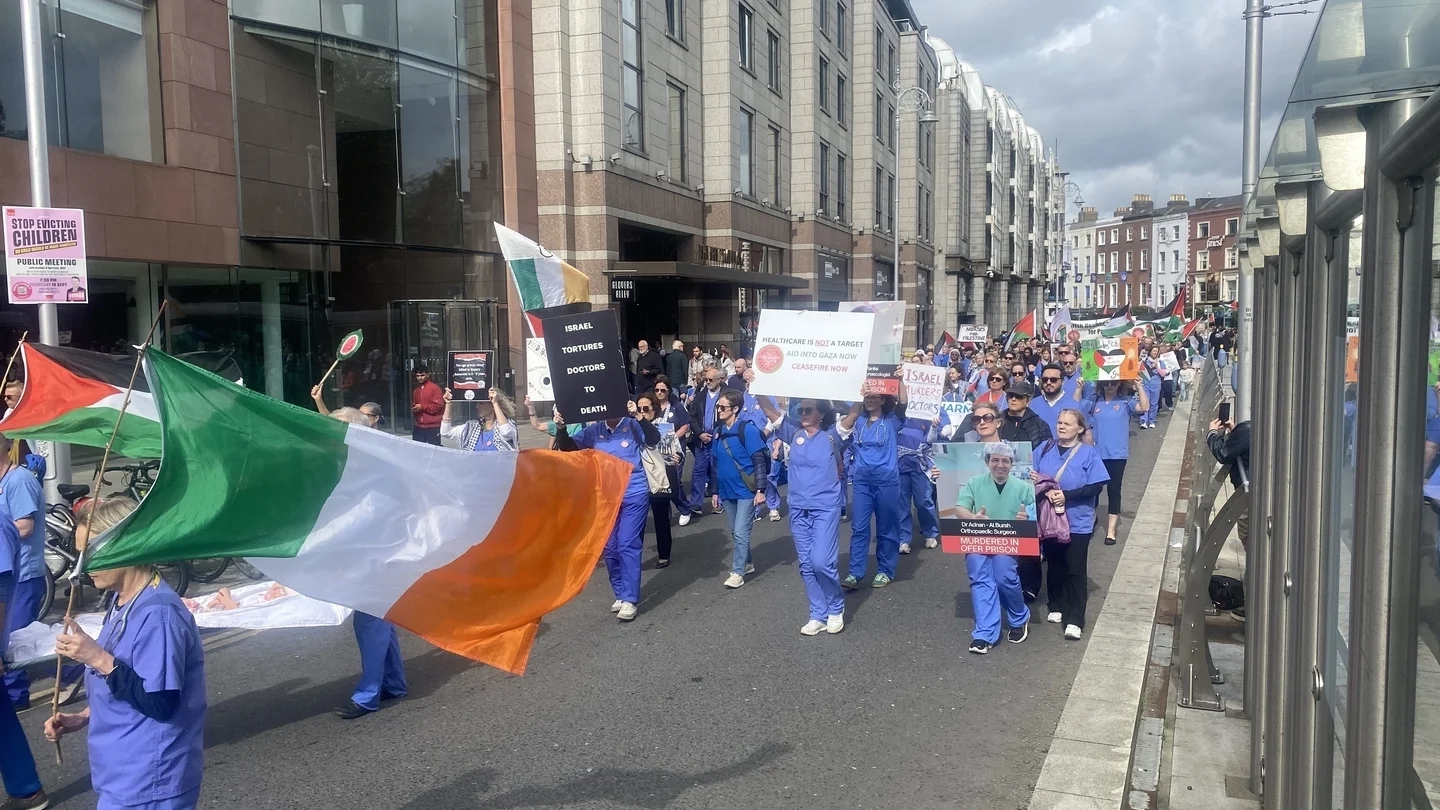 وتشهد أيرلندا منذ حرب الإبادة مظاهرات مستمرة بتنظيم "عاملو الصحة من أجل فلسطين في أيرلندا".