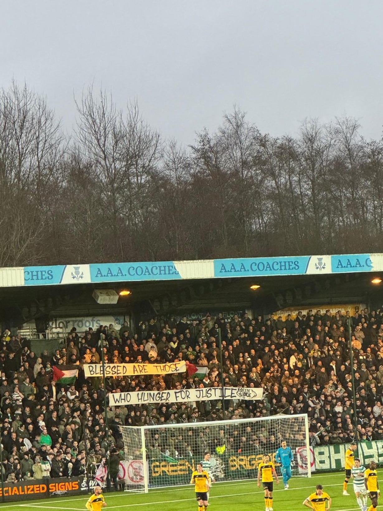 حيث قاموا، خلال مباراة فريق "سيلتيك" في الدوري الأسكتلندي الممتاز في ملعب "Celtic Park" بمدينة غلاسكو، برفع لافتة تحمل شعار "طوبى لمن يتوقون إلى العدل"، وذلك في إشارة إلى دعمهم لمطالب النشطاء المضربين في تحقيق العدالة الاجتماعية والسياسية.