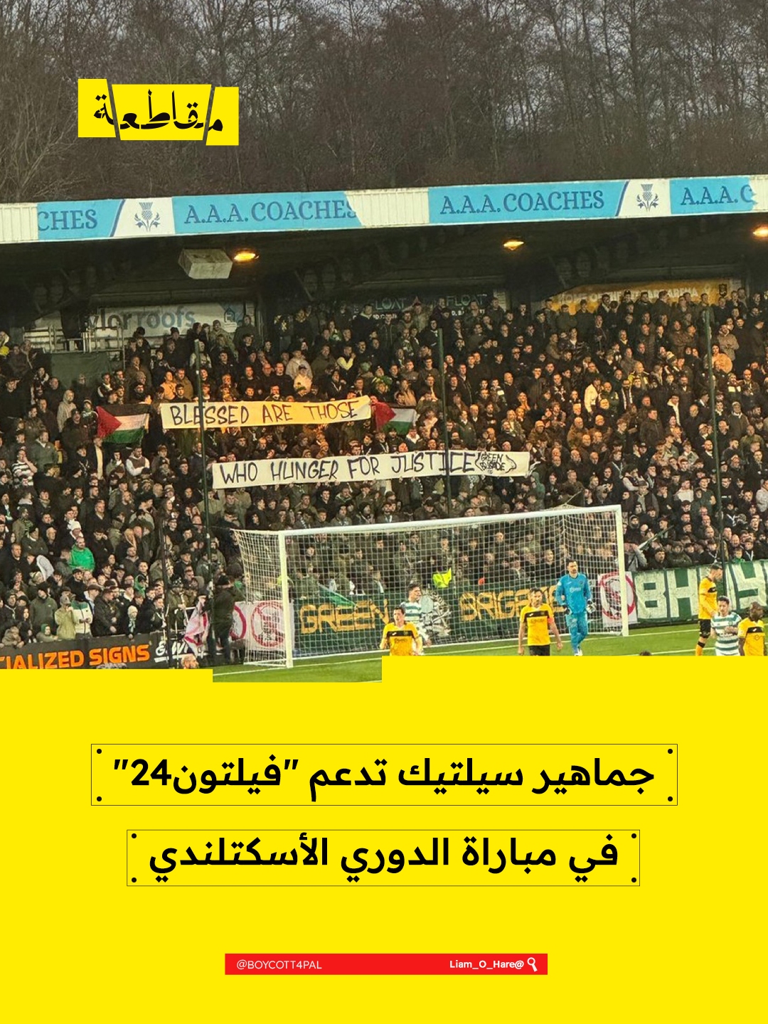 أظهر مشجعو فريق "سيلتيك"، المعروفون باسم "Green Brigade"، تضامنهم الكامل مع نشطاء "حركة فلسطين" الذين يخوضون إضرابًا عن الطعام في السجون البريطانية.
