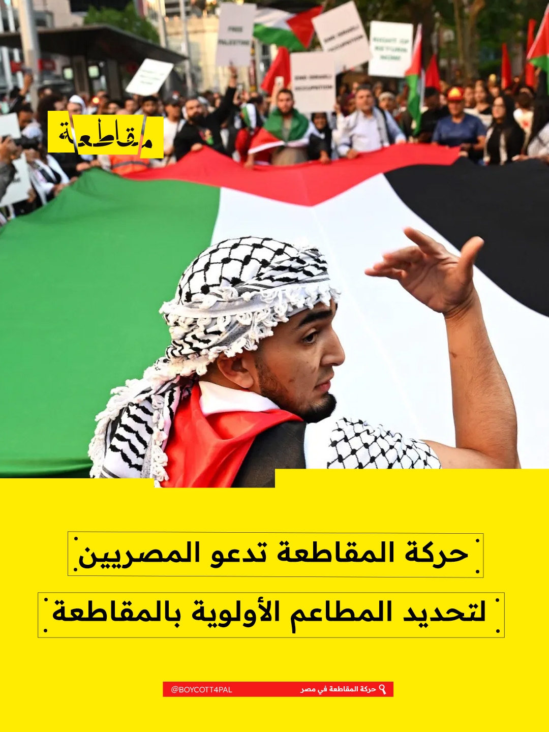 دعت حركة المقاطعة في مصر متابعيها إلى المشاركة في تحديد أول المطاعم التي ستستهدفها حملة مقاطعة مركزة، في خطوة تهدف إلى الضغط على الشركات المشاركة أو المتعاونة مع الاحتلال.