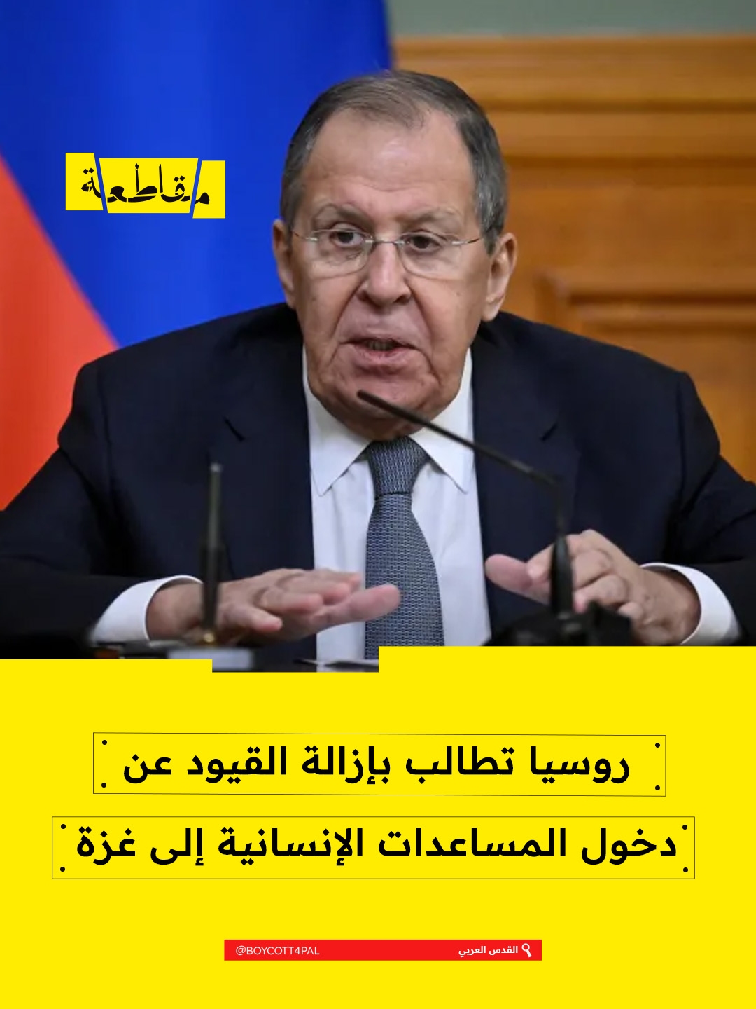 شدّد وزير الخارجية الروسي سيرغي لافروف، أمس الأحد، على ضرورة أن ترفع "إسرائيل" جميع القيود المفروضة على إدخال المساعدات الإنسانية والغذائية إلى قطاع غزة. وأوضح لافروف، خلال مؤتمر صحفي، أن تقارير متكررة تَرِد بشأن خروقات لوقف إطلاق النار في القطاع، مؤكّدًا أن على "إسرائيل" إزالة العوائق الكبيرة التي تعرقل دخول المساعدات وتوزيعها. وأضاف أن الأوضاع في غزة لا تزال بالغة الهشاشة.