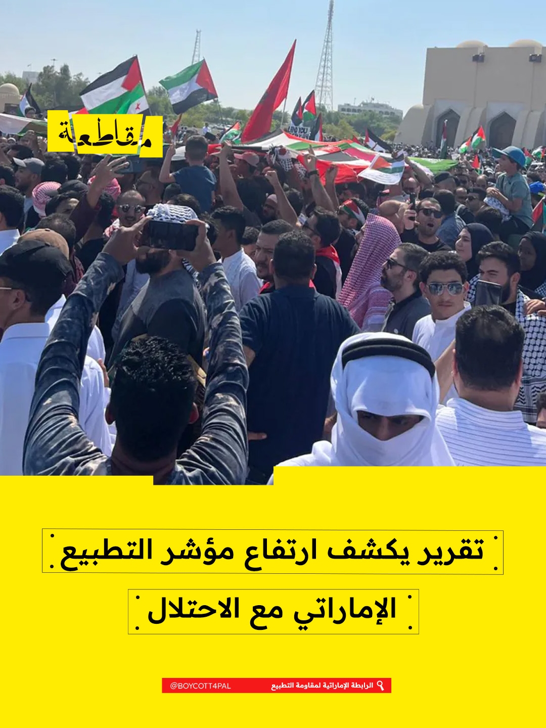 أصدرت الرابطة الإماراتية لمقاومة التطبيع تقريرها الشهري بشأن مؤشر التطبيع الإماراتي الإسرائيلي لشهر نوفمبر 2025، حيث سجل المؤشر 90 نقطة، ما يعكس تصاعد النشاطات التطبيعية بين الإمارات والاحتلال.