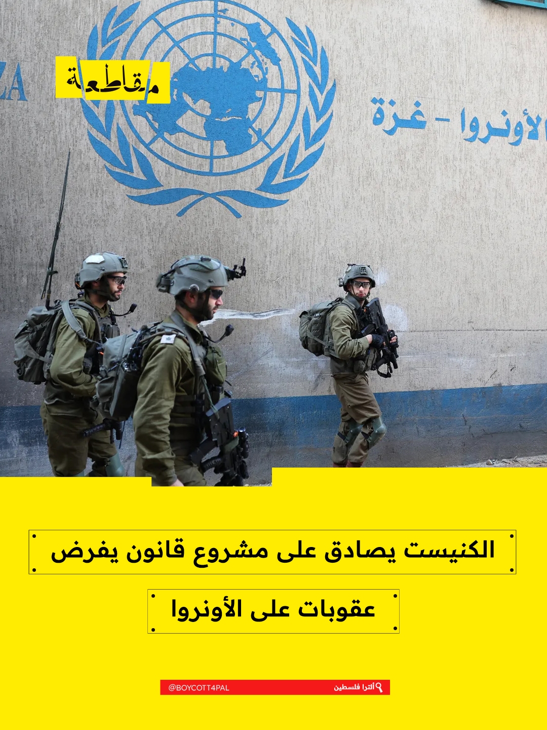 كما ينص القانون على مصادرة ممتلكات "الأونروا" داخل "إسرائيل" خلال مهلة لا تتجاوز 30 يومًا من دخول القانون حيز التنفيذ.