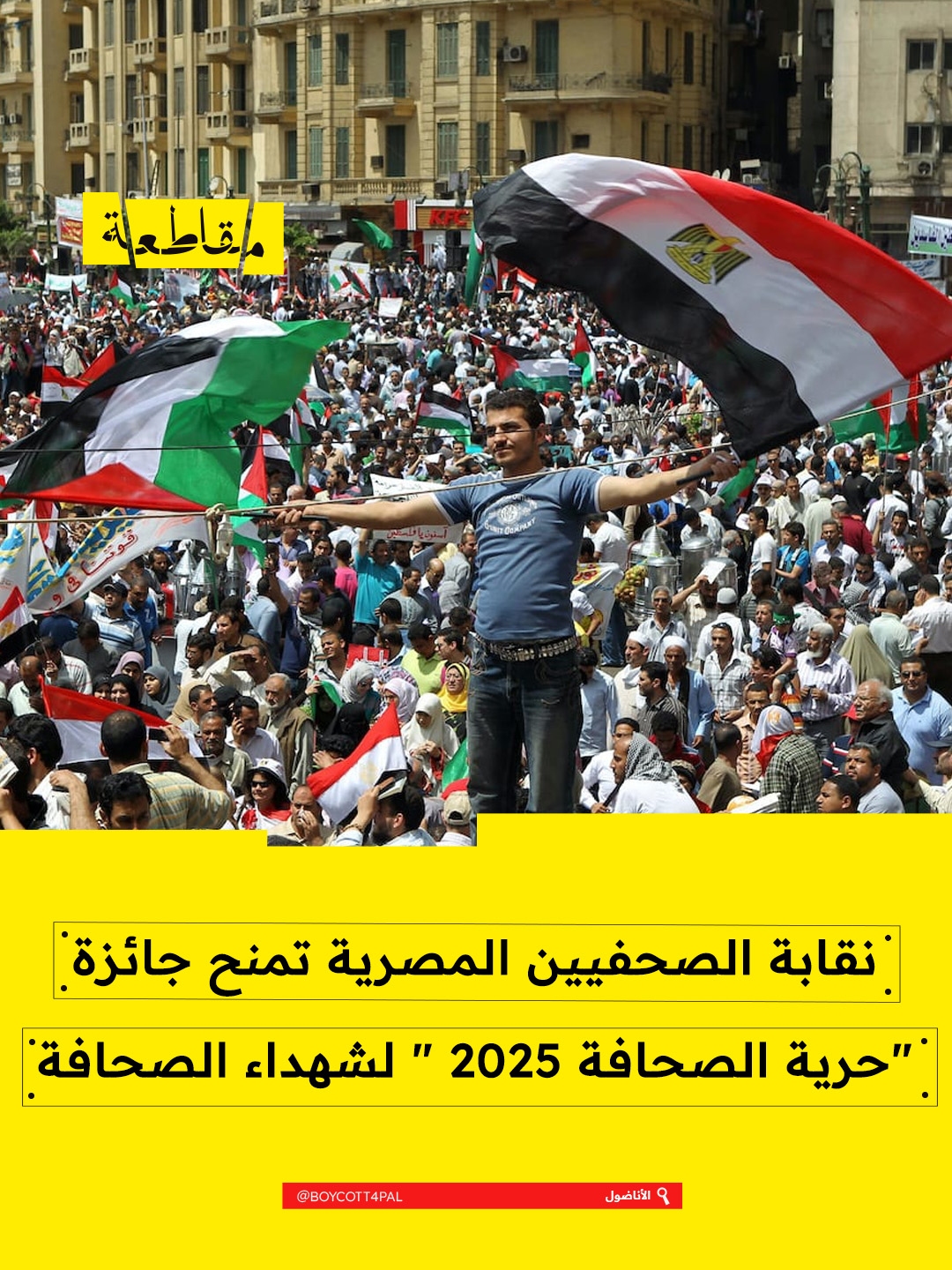 منحت نقابة الصحفيين المصريين، جائزة حرية الصحافة لعام 2025 لشهداء الصحافة الفلسطينية الذين استشهدوا خلال حرب الإبادة على قطاع غزة، التي اندلعت في 8 أكتوبر/تشرين الأول 2023.