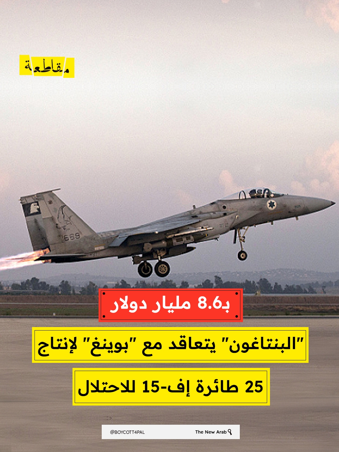 أعلن "البنتاغون" عن فوز شركة بوينغ بعقد قيمته 8.6 مليار دولار لبرنامج طائرات إف-15 الإسرائيلية، وذلك عقب لقاء الرئيس الأمريكي دونالد ترامب برئيس الوزراء الإسرائيلي بنيامين نتنياهو في فلوريدا.