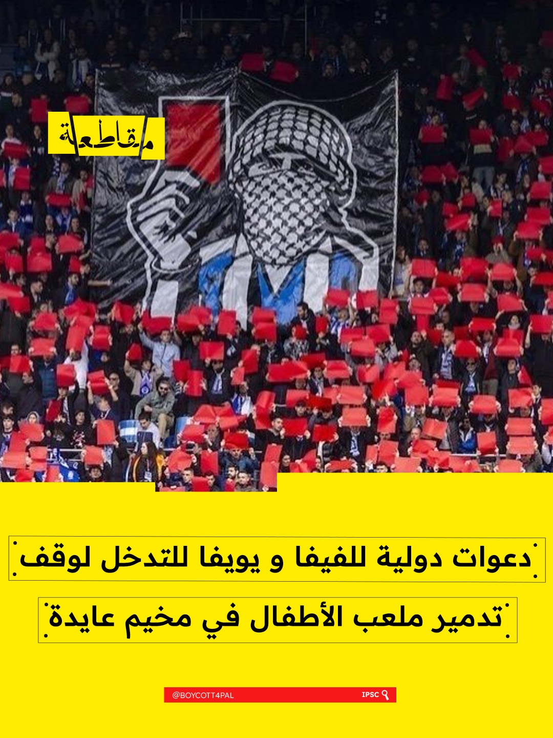 ودعت الحملة كل من الاتحاد الدولي لكرة القدم (فيفا) والاتحاد الأوروبي لكرة القدم (يويفا) إلى التدخل الفوري لوقف عملية التدمير، محذّرة من أن استمرار دعم المؤسسات الصهيونية في مثل هذه الانتهاكات يعرضها للمساءلة ويستدعي اتخاذ إجراءات صارمة، بما في ذلك استبعاد "إسرائيل" من المنافسات الدولية.