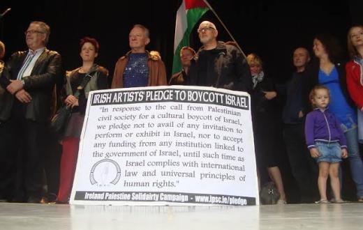 أُطلقت الحملة الأيرلندية للتضامن مع فلسطين (IPSC) في أغسطس 2010، وبدأت بتوقيع أكثر من 140 فنانًا، لتصل اليوم إلى 2415 توقيعًا من فنانين وعاملين في المجال الثقافي، مؤكدة استمرار الالتزام بمقاطعة أي عروض أو تمويل مرتبط بالحكومة الإسرائيلية حتى التزام الاحتلال بالقانون الدولي ومبادئ حقوق الإنسان.