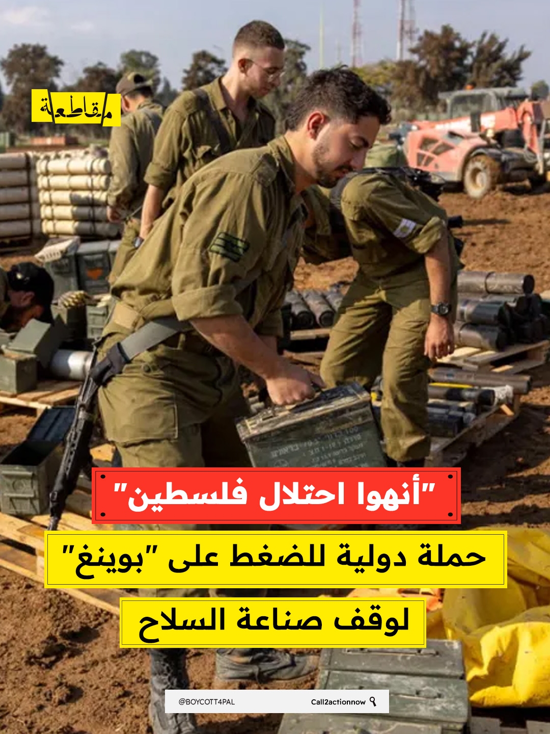 وشددت الدعوات على أهمية الاتصال بممثلي البرلمانات والحكومات للضغط من أجل إنهاء صفقات السلاح ومحاسبة الشركات المتورطة، إلى جانب الانضمام إلى الاحتجاجات والفعاليات الميدانية التي تتوسع في مدن عدة، في إطار حملة متواصلة لوقف صناعة الأسلحة وإنهاء الاحتلال.
