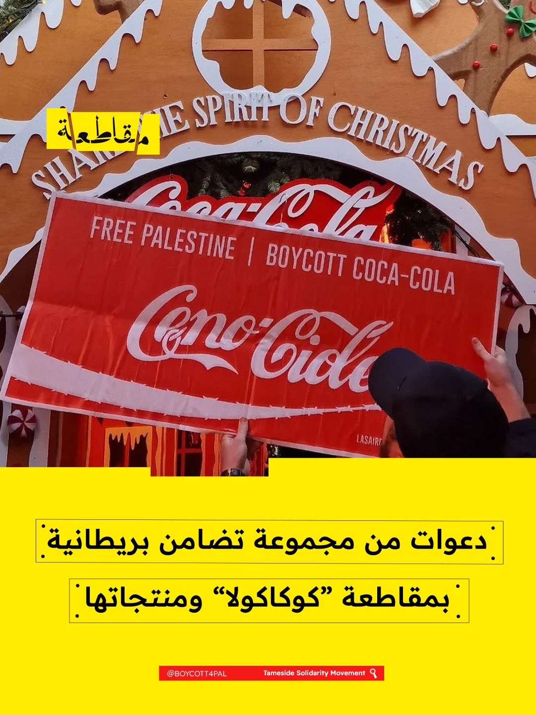 في تامسايد، دعت مجموعة حركة التضامن الفلسطيني إلى مقاطعة شركة كوكاكولا، مشددة على ضرورة مساءلة الشركات العالمية عن دورها في تعزيز أو تطبيع الظلم والجرائم ضد الفلسطينيين.