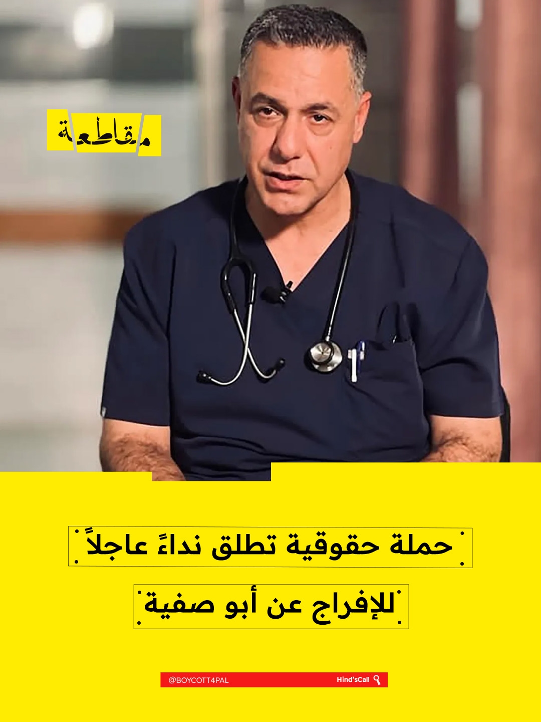 أطلقت حملة "نداء هند" (Hind’s Call) نداءً عاجلًا للمطالبة بالإفراج الفوري عن طبيب الأطفال الفلسطيني "حسام أبو صفية"، الذي دخل عامه الثاني في الاعتقال الإداري داخل السجون الإسرائيلية دون تهمة أو محاكمة.