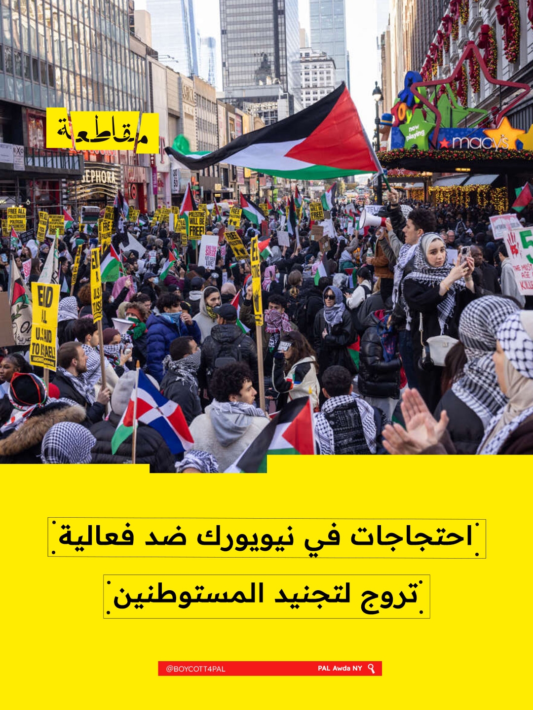 دعت مجموعتا PAL-AWDA NY/NJ (العودة) والجمعية الفلسطينية للتحرير إلى تنظيم فعاليتين احتجاجيتين واسعتين هذا الأسبوع في مدينة نيويورك، رفضًا للاستيطان الإسرائيلي وبيع الأراضي الفلسطينية المسروقة، وتنديدًا بمحاولات تجنيد المستوطنين والترويج لمشاريع استيطانية غير قانونية داخل الولايات المتحدة.