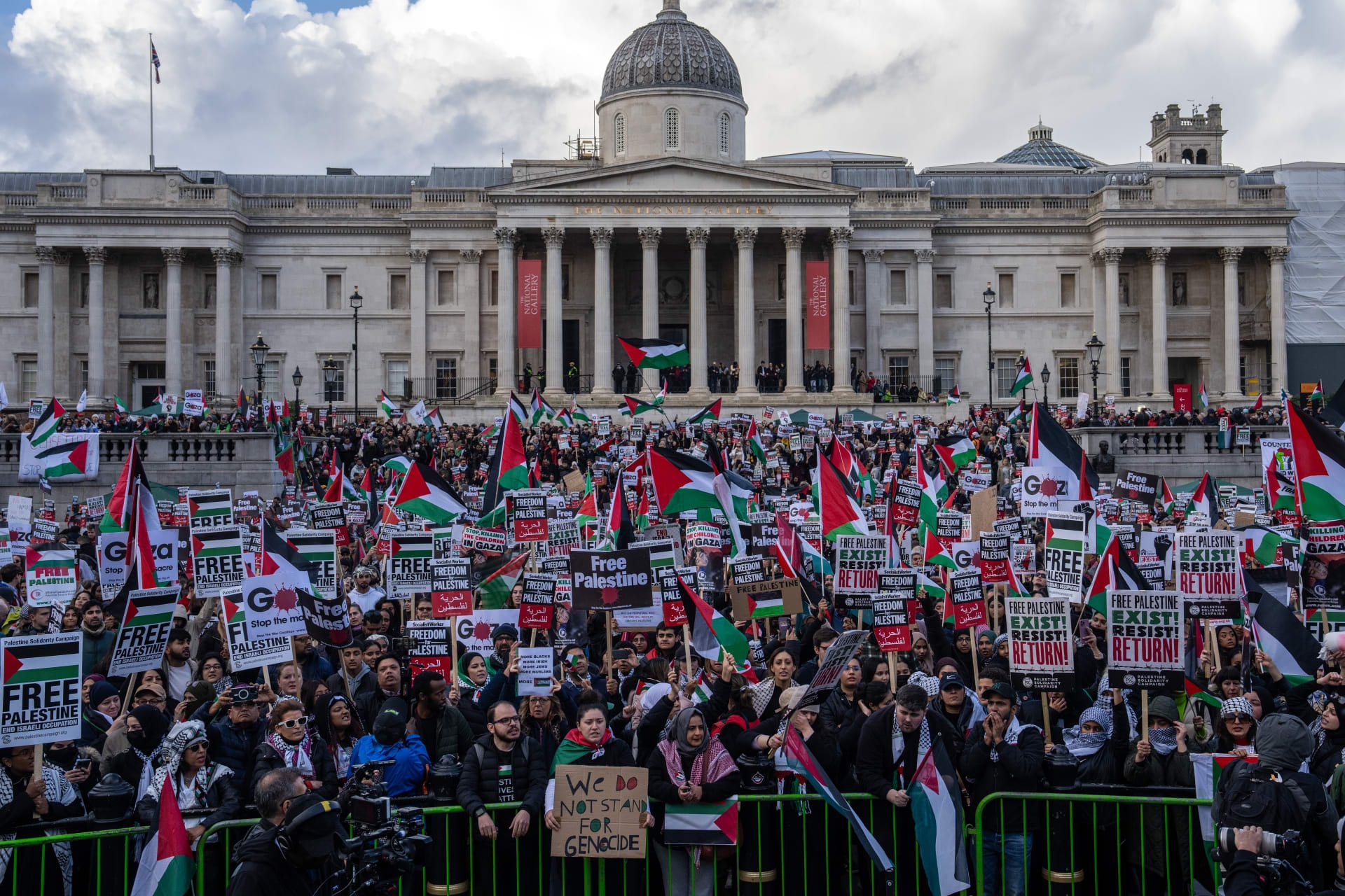 أعلنت الشرطة البريطانية اعتقال شخصين بتهمة ترديد شعارات تدعو إلى “انتفاضة” خلال مظاهرة مؤيدة لفلسطين في لندن، فيما احتُجز خمسة أشخاص إجمالًا أمام وزارة العدل في “وستمنستر” مساء الأربعاء. وجاءت