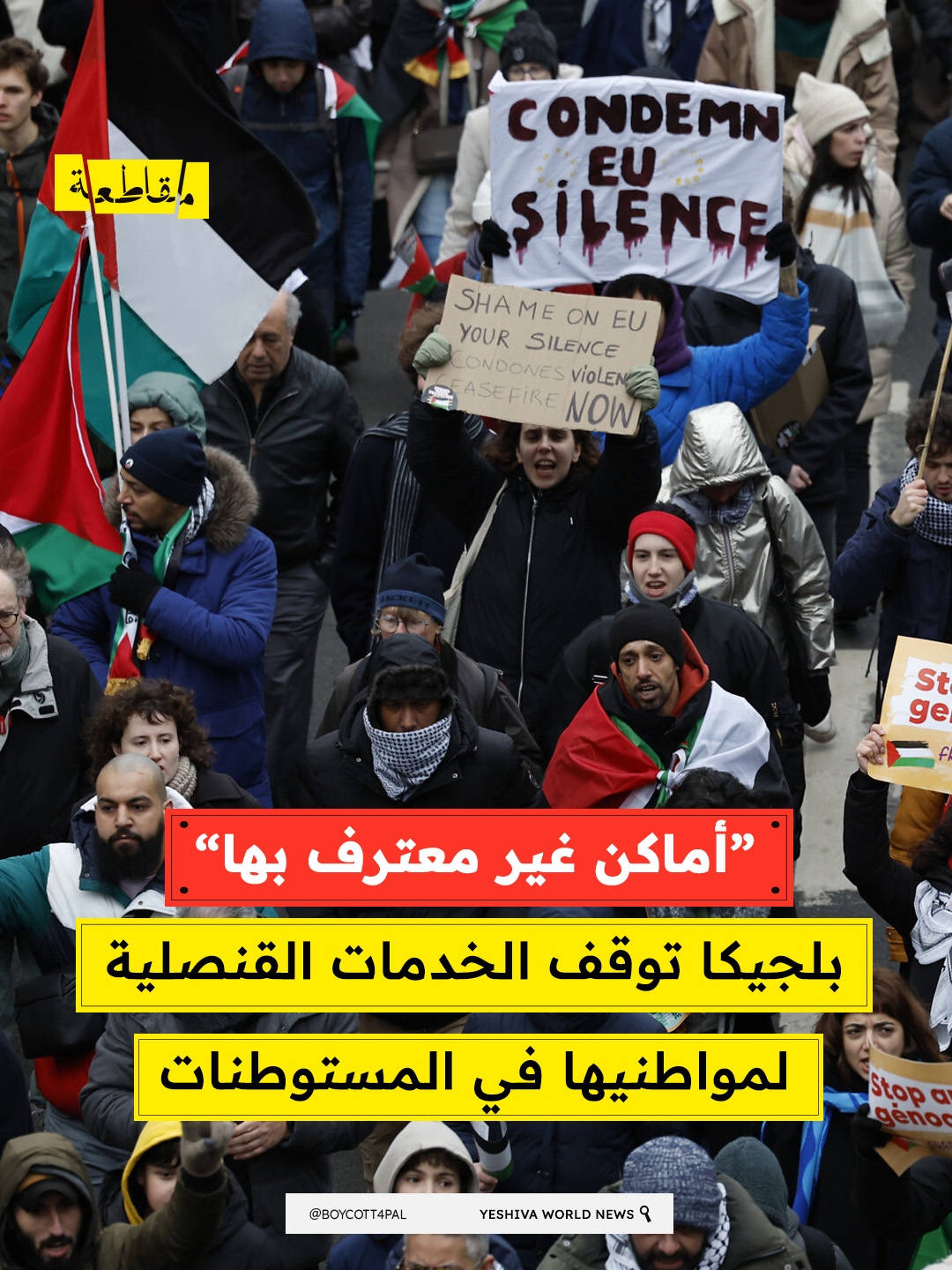 أعلنت بلجيكا وقف تقديم الخدمات القنصلية لحاملي الجنسية البلجيكية، والمقيمين في المستوطنات الإسرائيلية المقامة على أراضٍ فلسطينية محتلة، في خطوة تعكس التزامًا عمليًا بتطبيق القانون الدولي ورفض شرعنة الاستيطان الاستعماري غير القانوني.