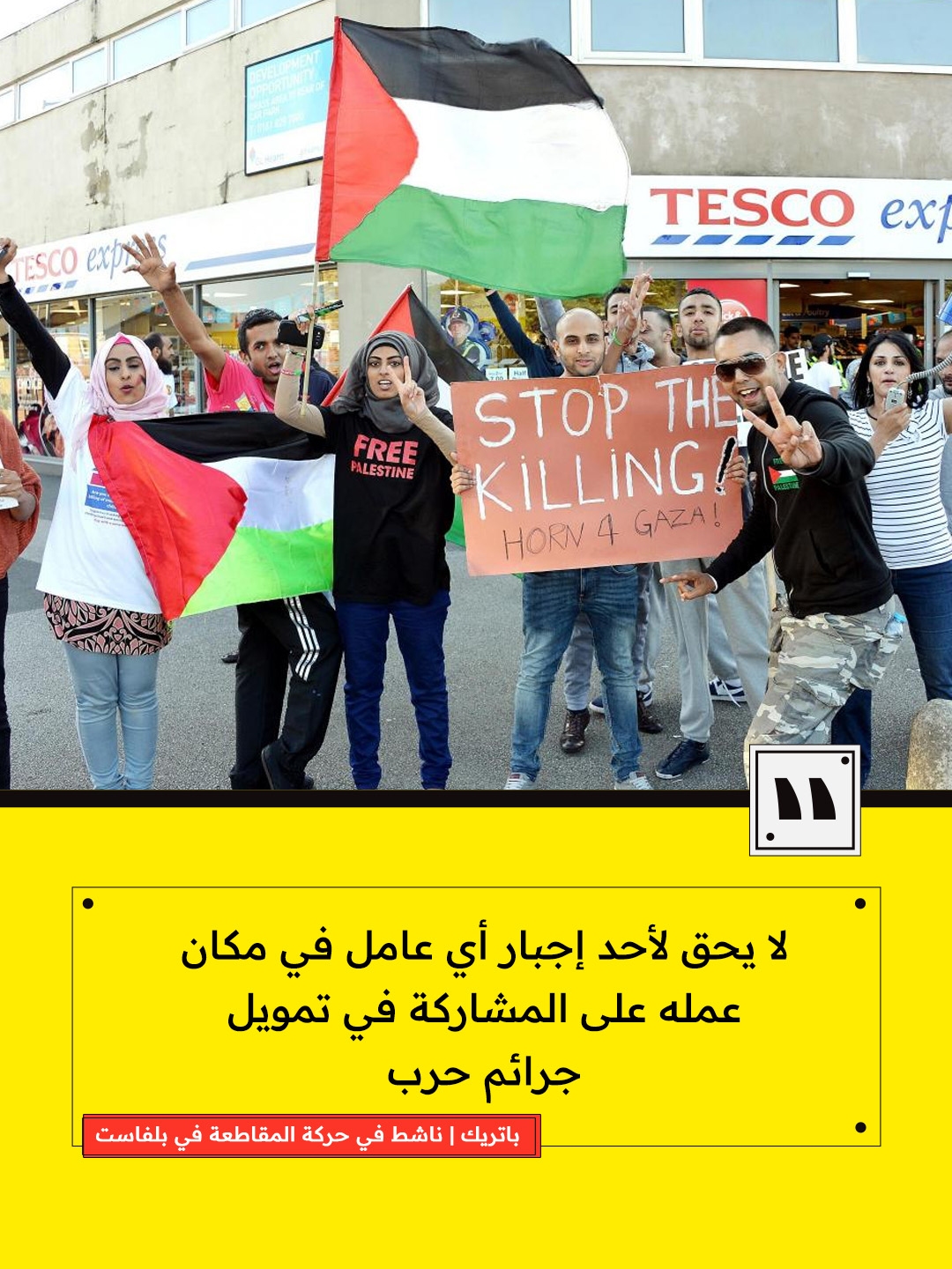 دعت حركة المقاطعة في بلفاست إلى جولة جديدة من الاتصالات الهاتفية والبريد الإلكتروني الجماعي مع شركة" تيسكو"، للضغط على الشركة بعد قرارها تعليق عمل أحد موظفيها الذي رفض التعامل مع منتجات إسرائيلية